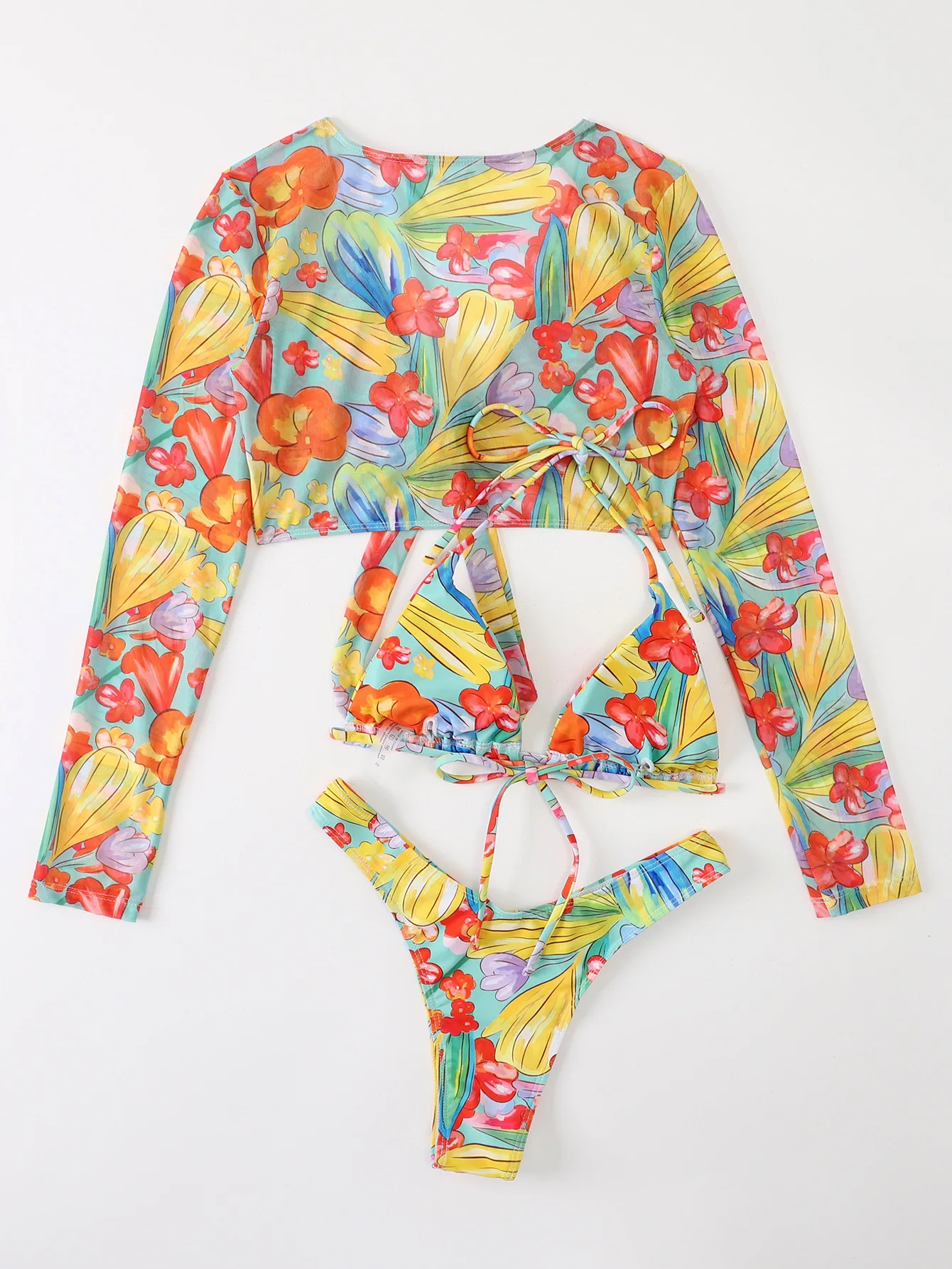 2023 3 Pieces Long Sleeve African Print Swimsuits Sexy Swimsuit