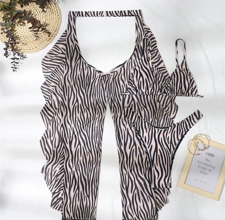MLY Ruffle Bikini Summer Two Piece Suit Sexy Swimwear Bandage Biquini Triangle Swimsuit Printed Bathsuit
