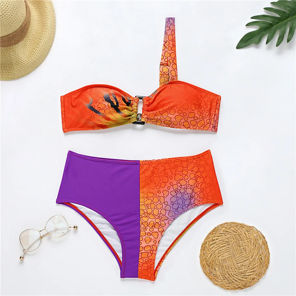 MLY Ruffle Bikini Summer Two Piece Suit Sexy Swimwear Bandage Biquini Triangle Swimsuit Printed Bathsuit