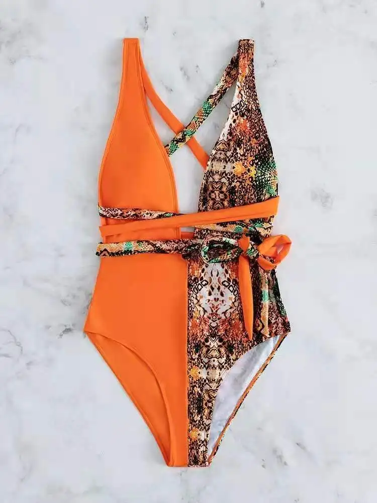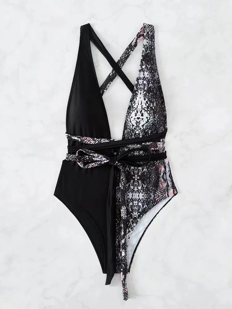Custom logo Deep V Snake Skin Women Sexy High Quality Bathing Suit