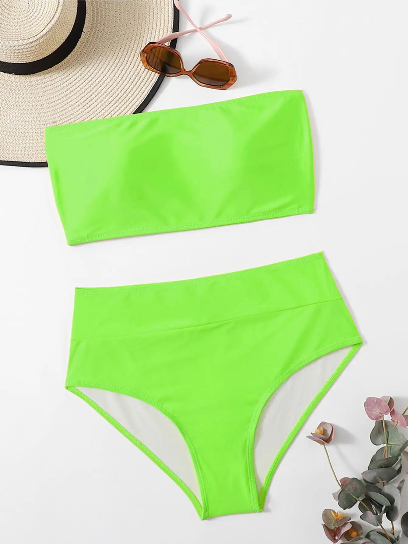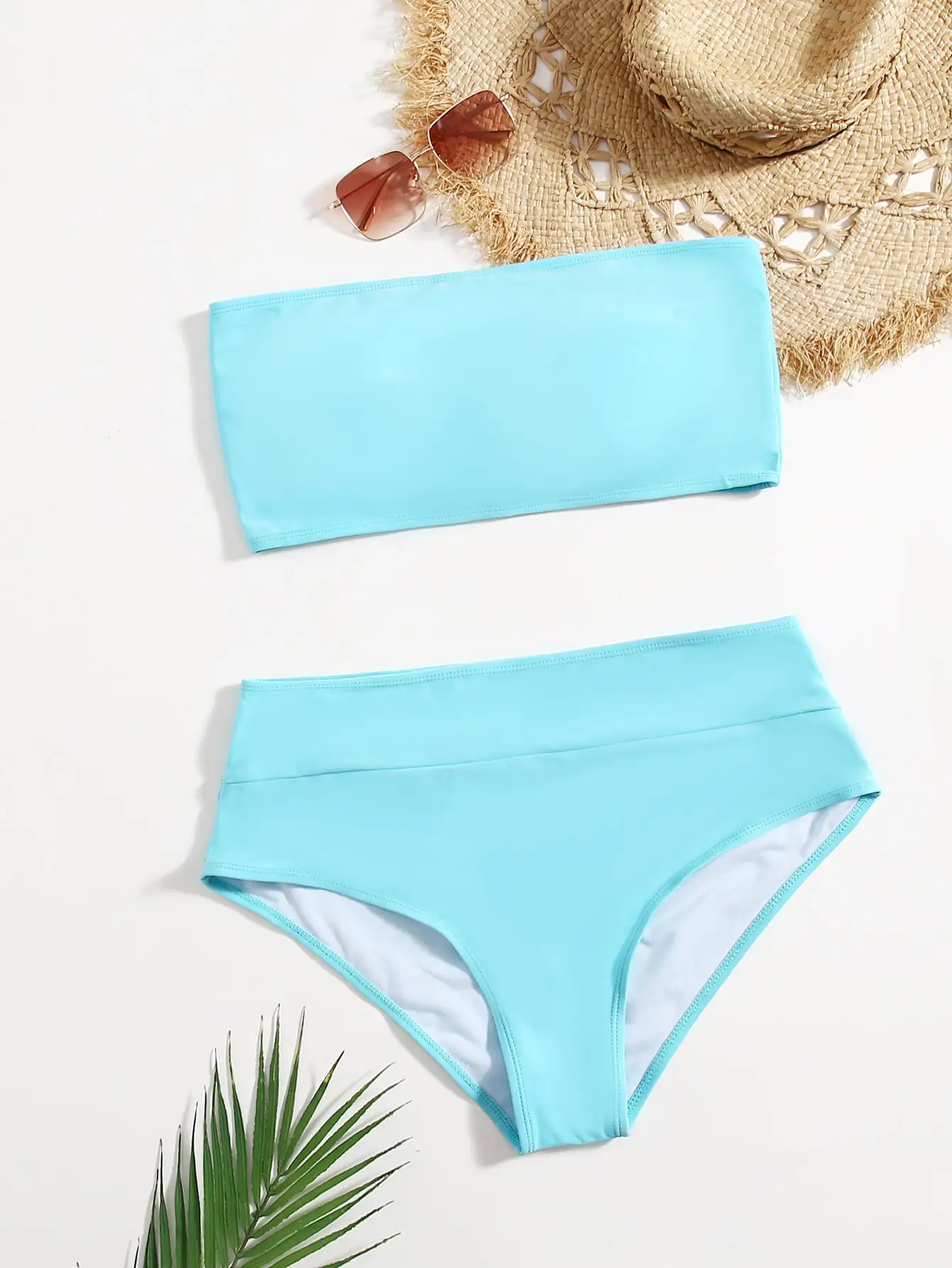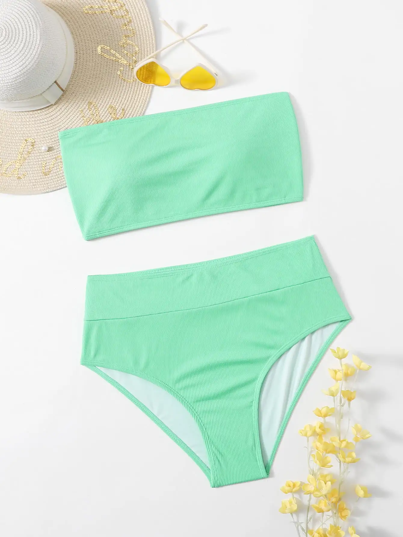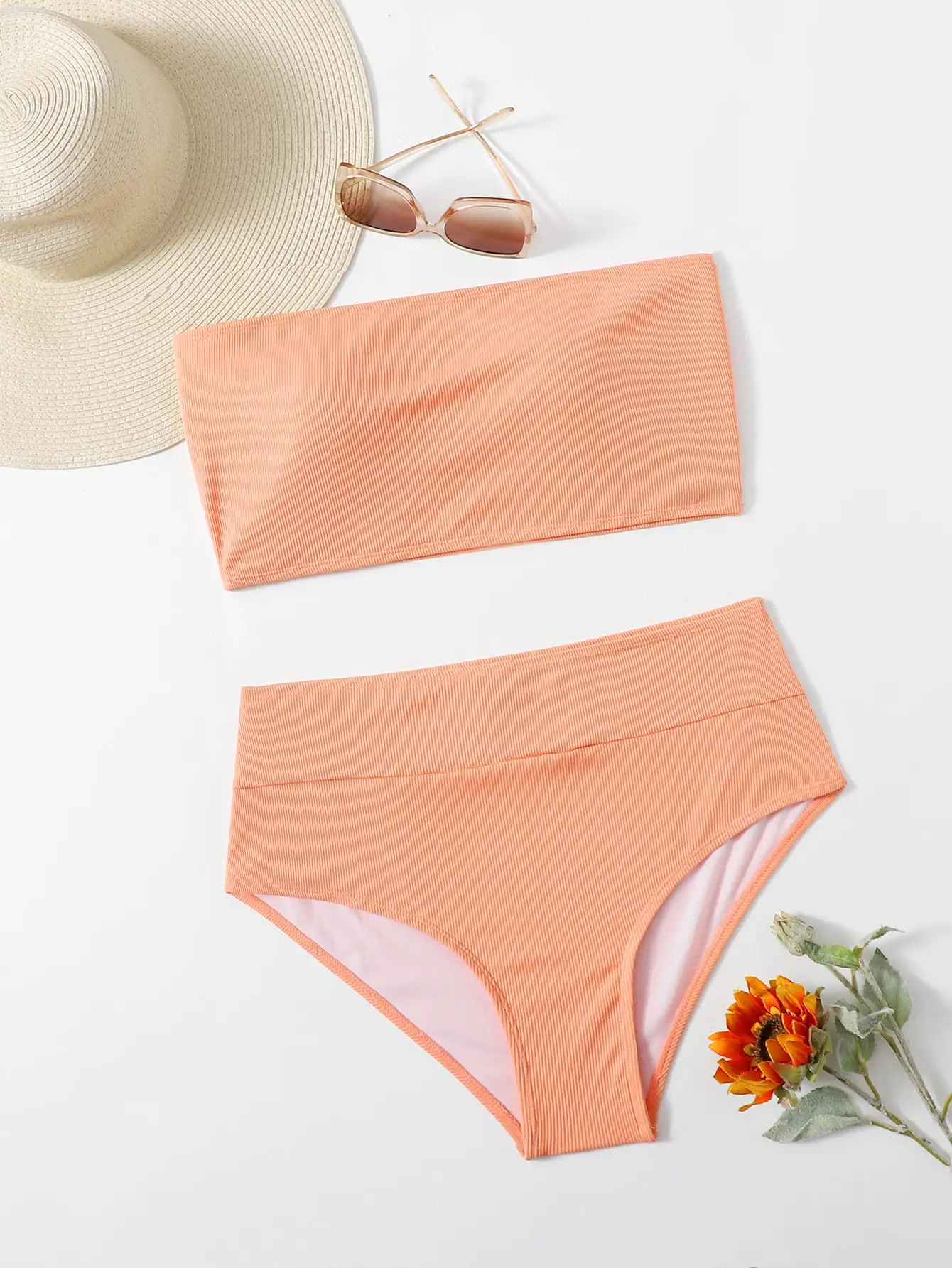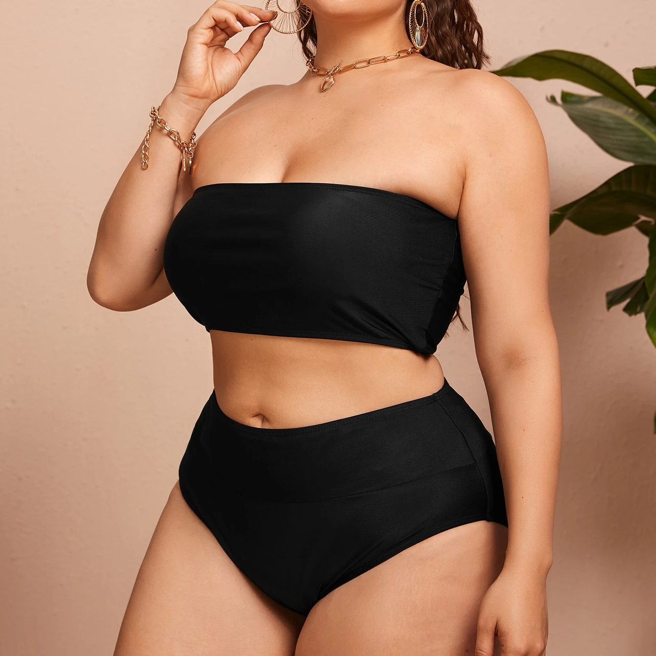 Cheap High Waist Bandeau Bikini Swimwear Plus Size Swimsuits Bathing Suits