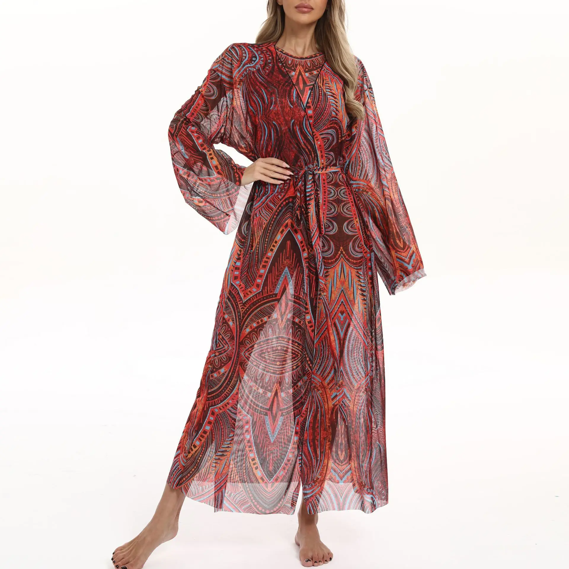 2026 New Design Women's Beachwear Swimsuit Cover-up and Long Maxi Dress Russian Summer Sun Protection Mesh Casual Cover-up