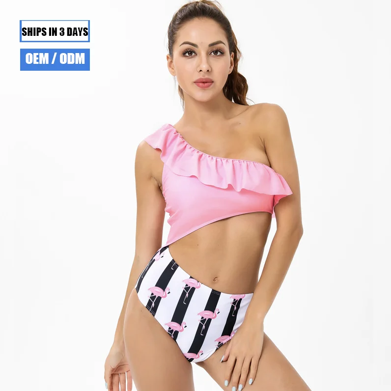 MLY Ruffle Bikini Summer Two Piece Suit Sexy Swimwear Bandage Biquini Triangle Swimsuit Printed Bathsuit