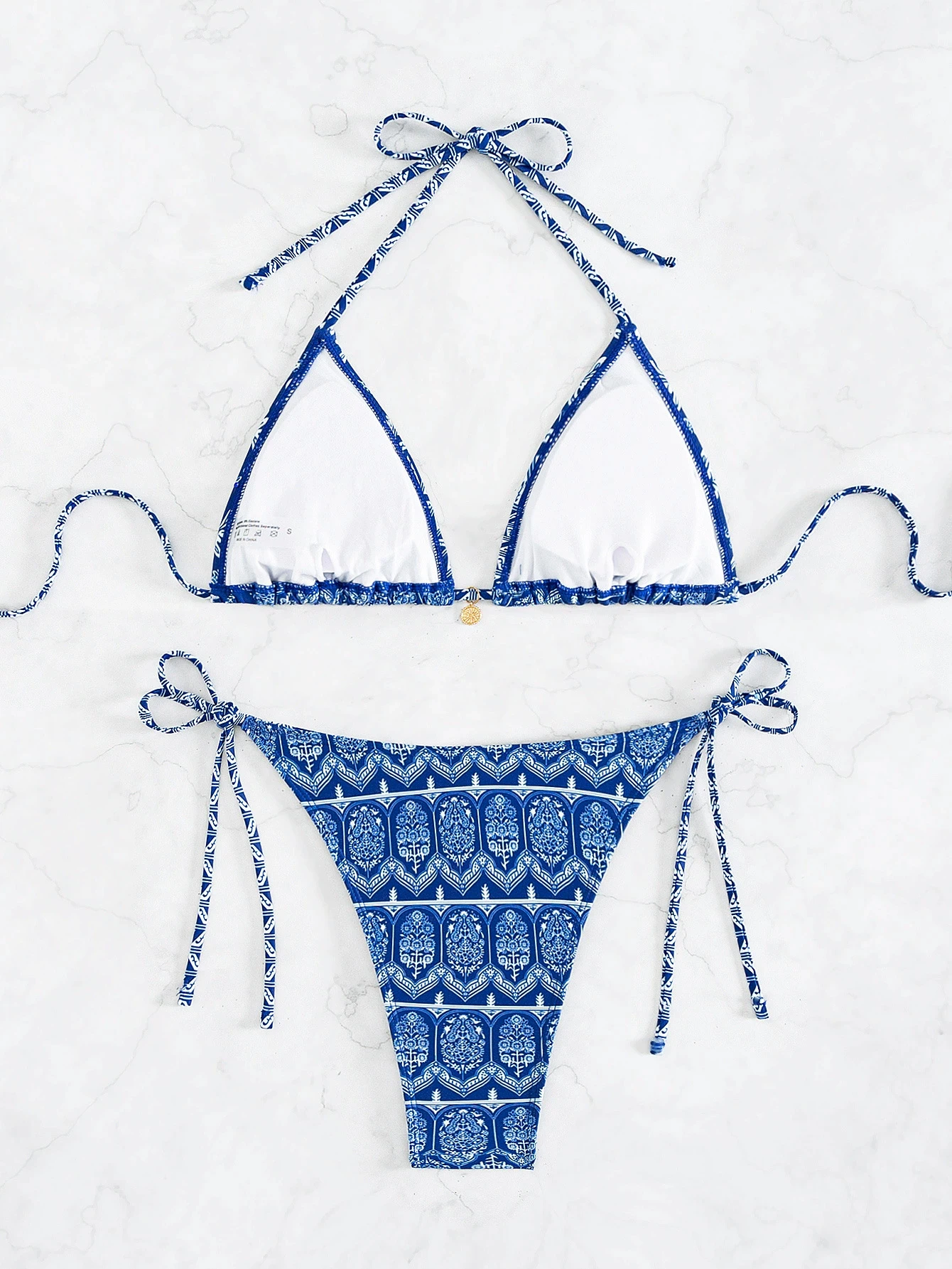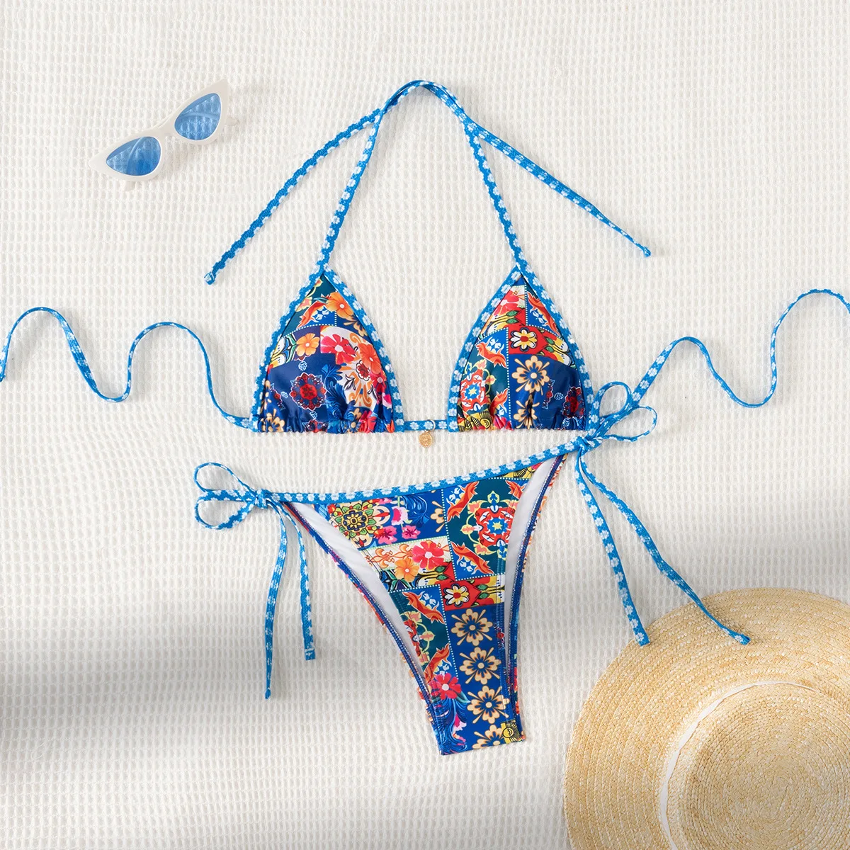 New Women's Two-Piece Backless Triangle Bikini Set, Quick-Drying Summer Sexy Swimsuit with Print, Beachwear