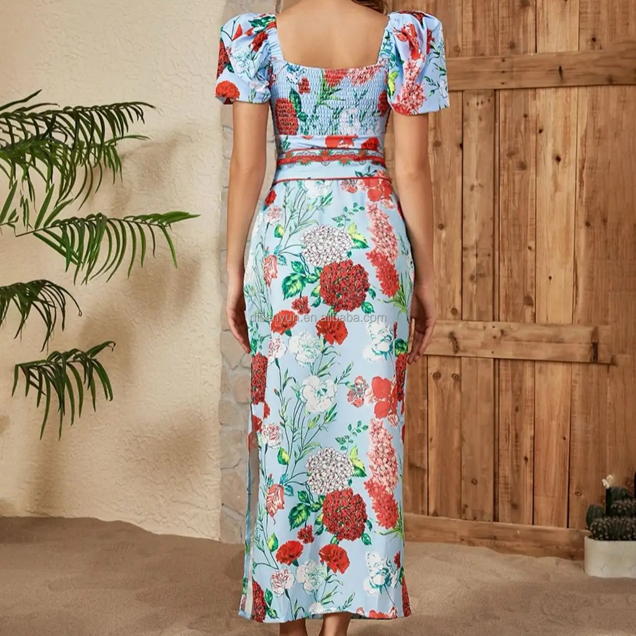 Fashion Luxury High Waist Slim Fit Lace-up Printed One-piece Swimsuit Conservative Chiffon Long Skirt Swimsuit 2-piece Set