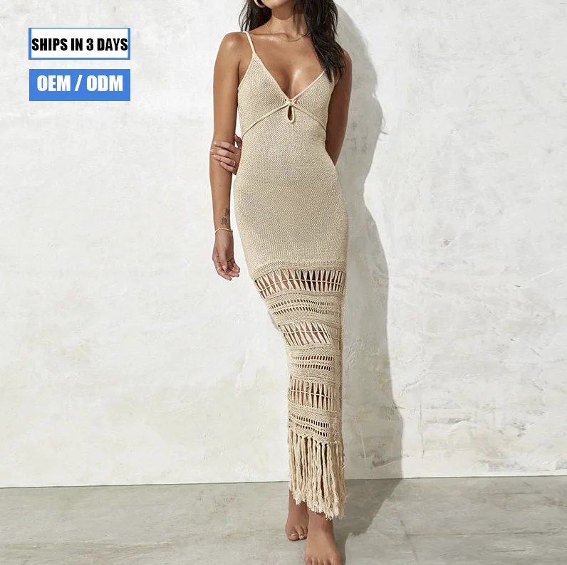 2026 New Sexy Knitted Hollow Beachwear with Tassel Bikini Cover-up Beachwear Sunscreen Dress Sexy Cover