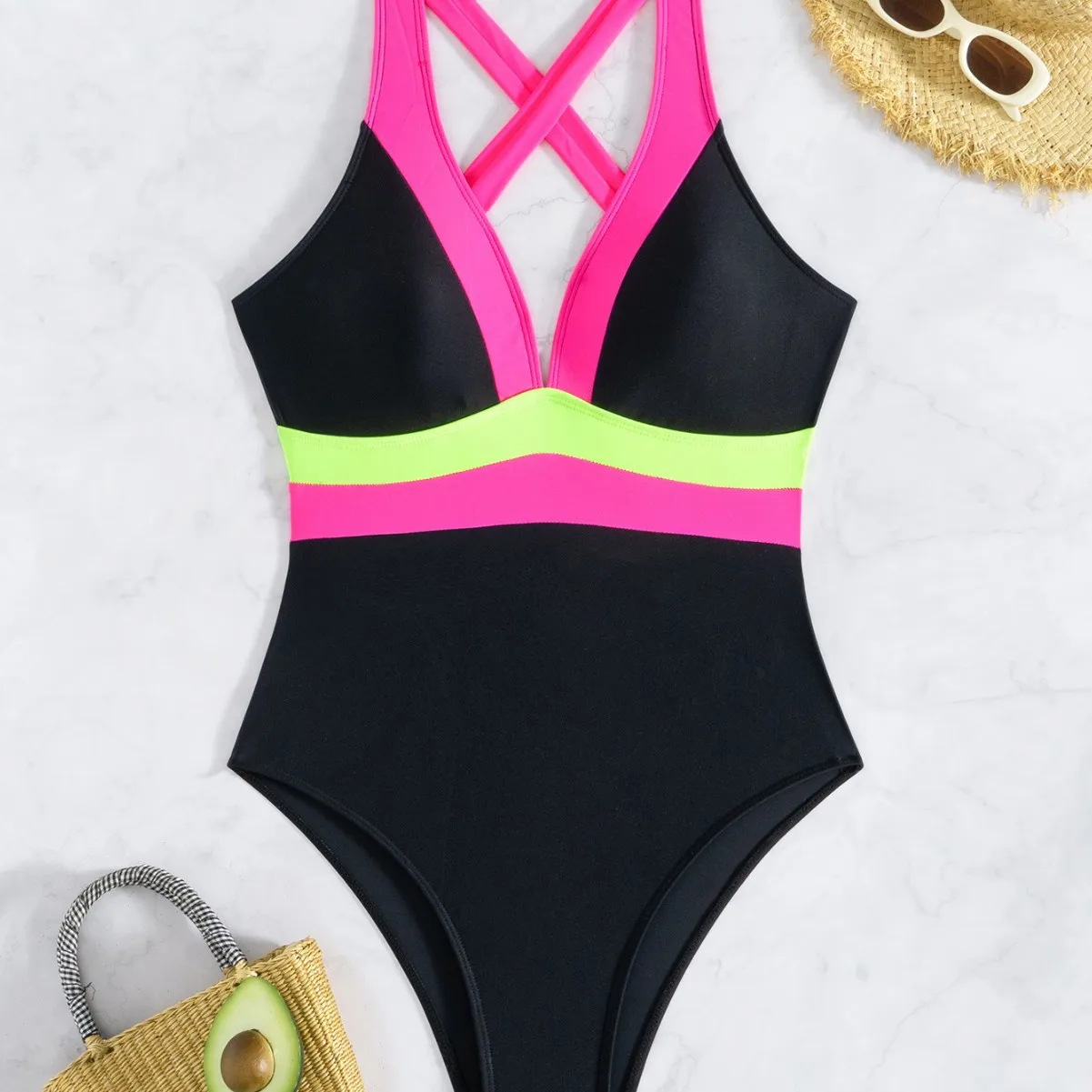 Custom 2026 New Deep V Neck Sexy One-Piece Bikini Backless One-Piece Swimsuit Women's Abdomen Control Swimsuit Single Kink