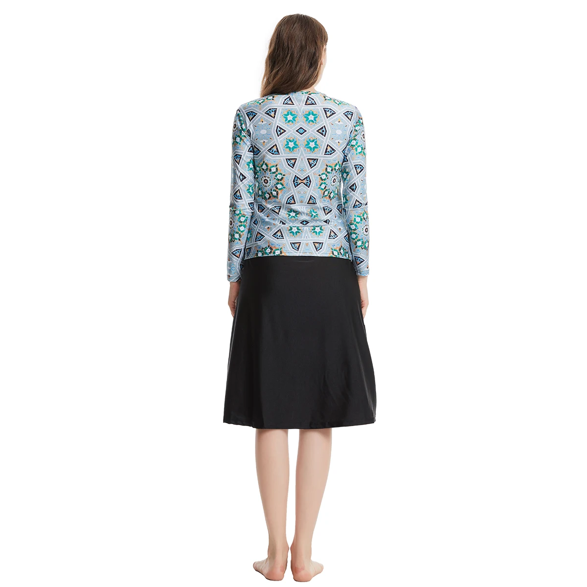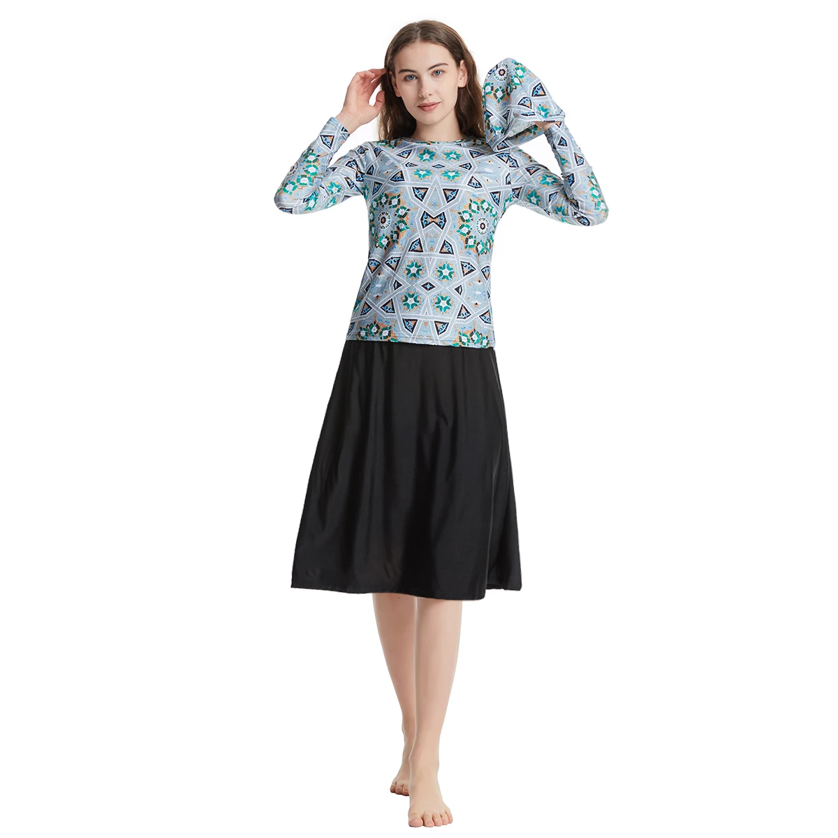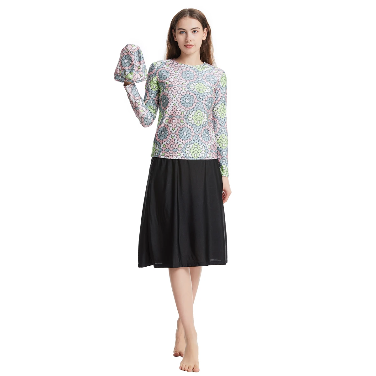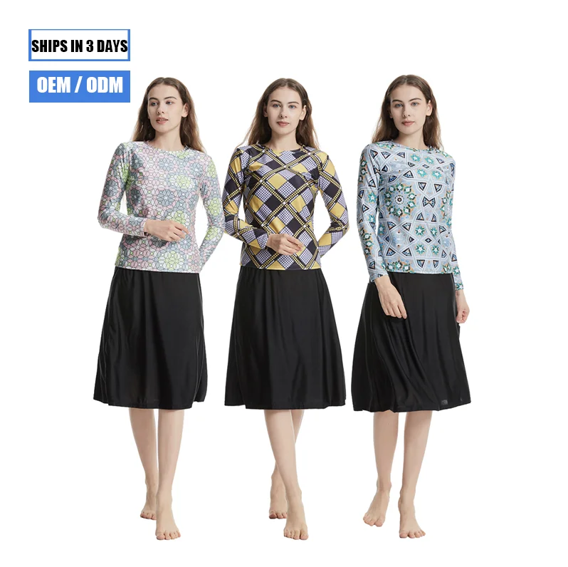 Custom Middle East Southeast Asia Swimwear Conservative Three-piece Irregular Pattern Burkinis Anti-UV Front Logo Head Cap