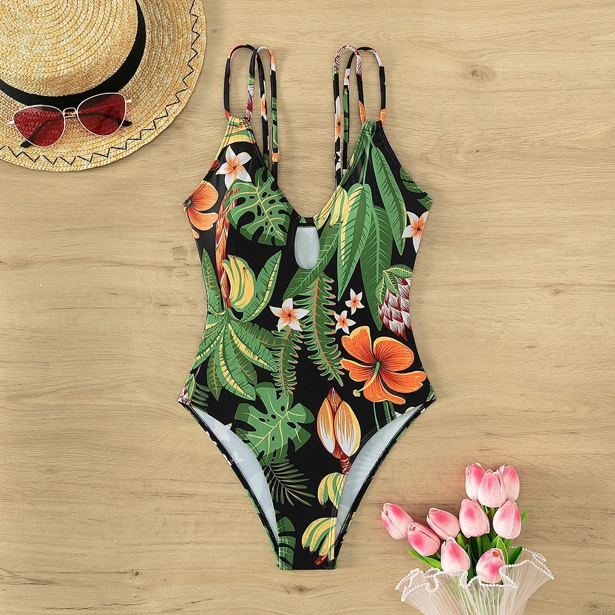 Custom One Piece Women's Luxury Designer V-Neck Flower Swimsuit 2026 High Cut Tummy Control Quick Dry Anti-UV Spandex/Polyester