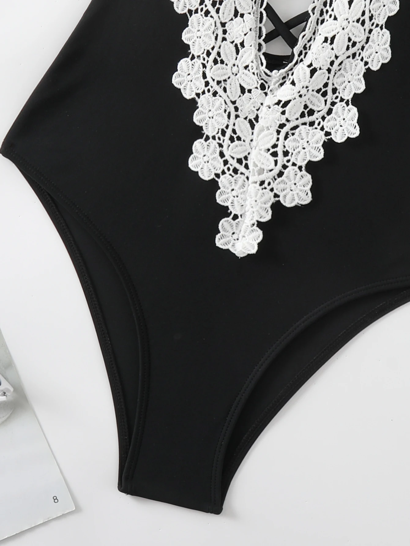 2026 Designer Custom One-Piece Bandeau V-Neck Flower Swimsuit with Cross Straps Women High Waist Stretch High Cut Bottom