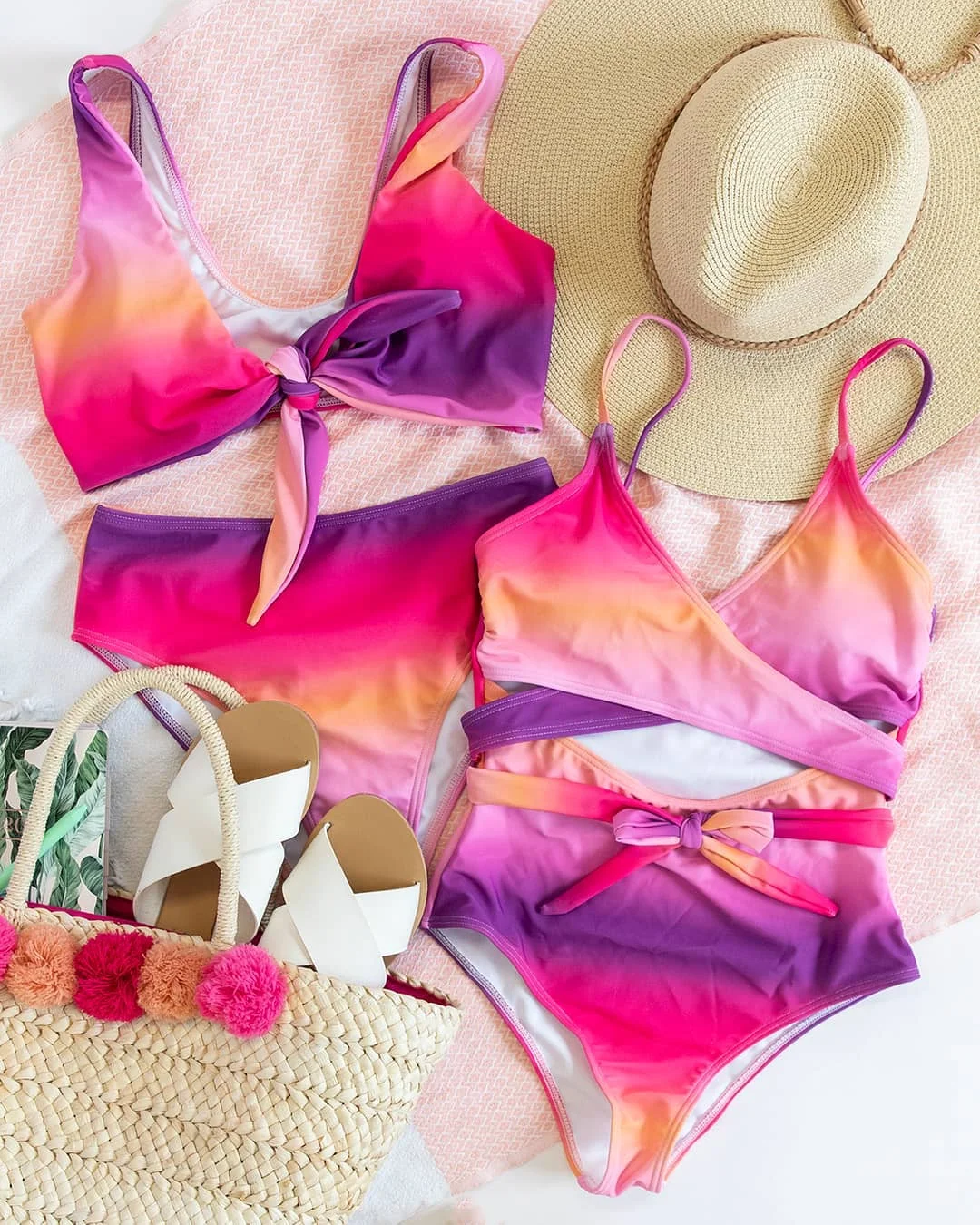 MLY Ruffle Bikini Summer Two Piece Suit Sexy Swimwear Bandage Biquini Triangle Swimsuit Printed Bathsuit