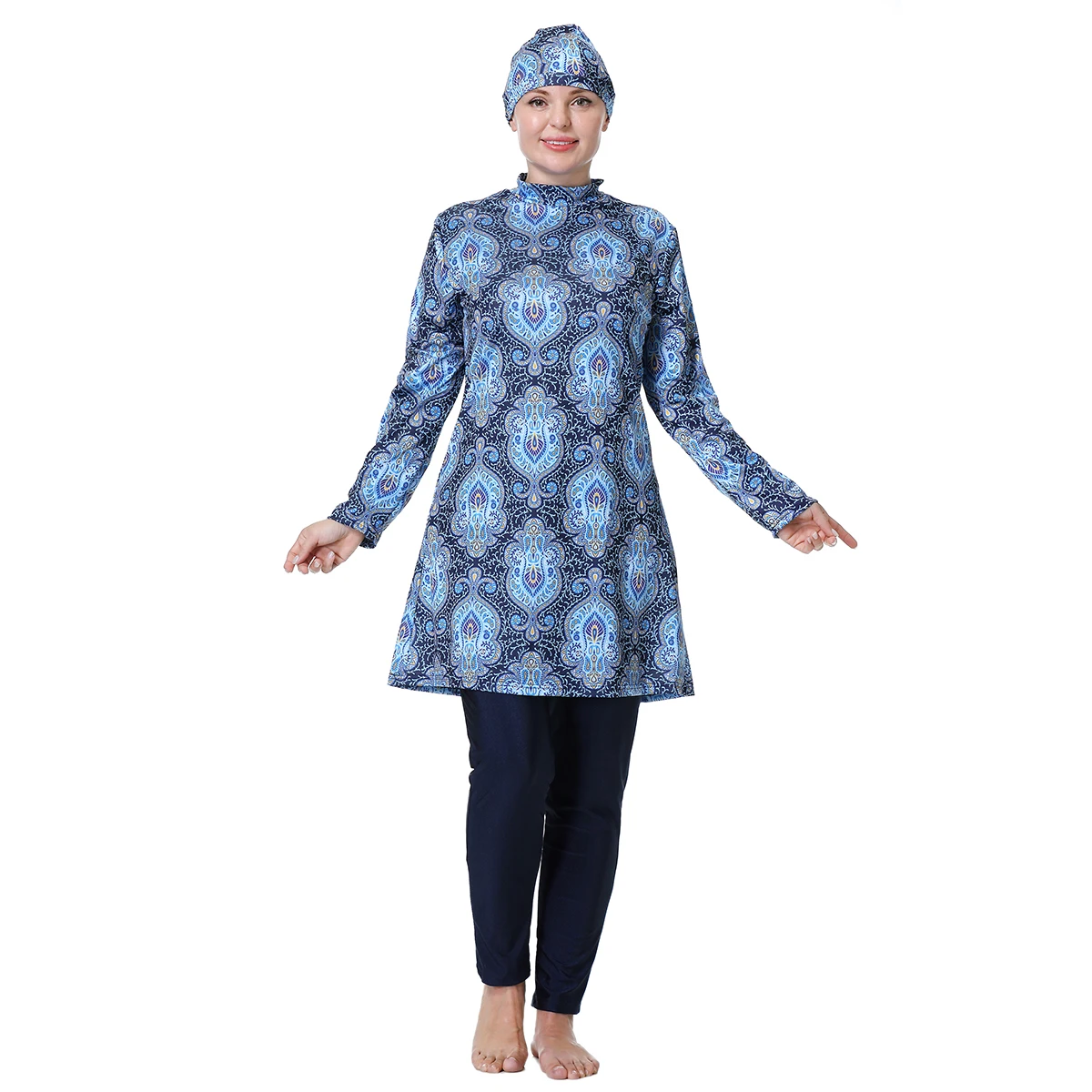 Custom 3XL-8XL Factory Wholesale Beach Cover-ups Fitness Sports Muslim Swimwear Women High Waist Swimsuit Burkinis Pants 3 Piece