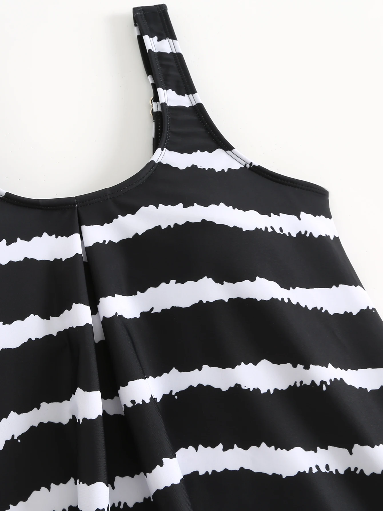 Customized Luxury Women's High Waist Tankini 2 Piece Set Round Neck Striped Spandex/Polyester Stretch & Quick Dry 2026 Swimsuit