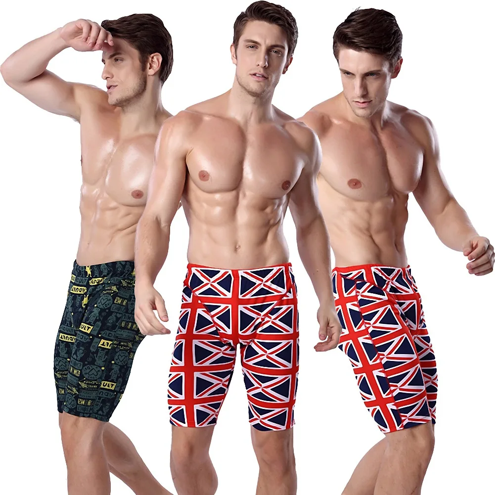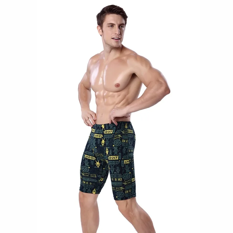 Custom Mens Swimwear Briefs Quick Dry Waterproof Chlorine Resistant High Waist Cartoon Pattern Swim Trunks