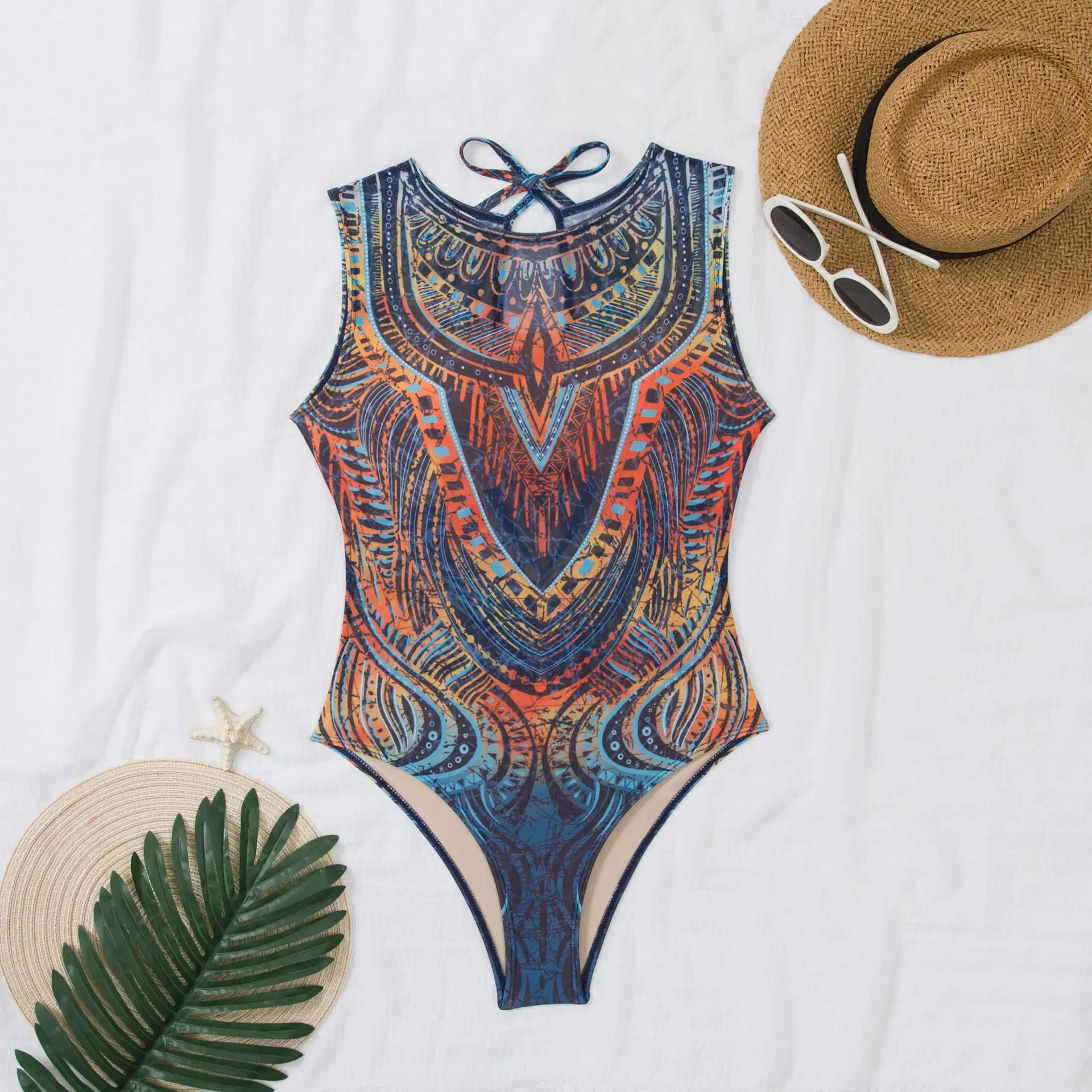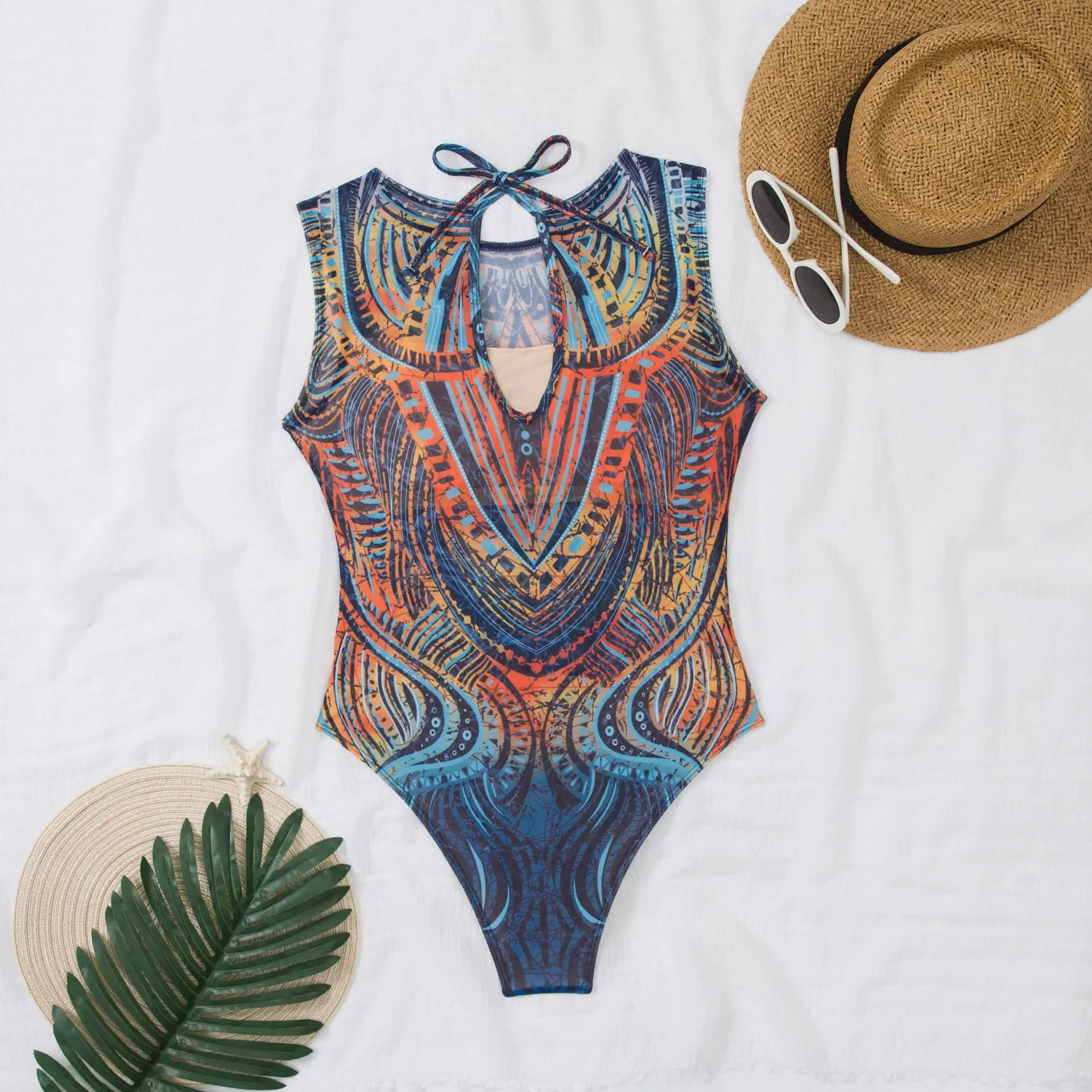 MLY Factory Wholesale Bikini Custom Sexy Bodysuit Jumpsuit Beachwear Backless Striped Print One Piece Swimwear