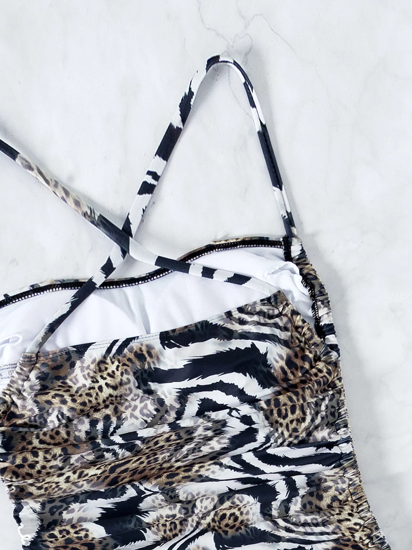Custom Women's Luxury One-Piece Designer Round Neck Leopard Spandex/Polyester High Cut Tummy Control Swimwear 2026