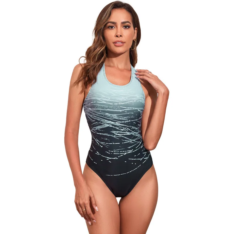 2026 Push-up Cross One-piece Beach Swimsuit Gradient Print Sexy One-piece Women's Swimsuit Bikini Fitness Swimsuit