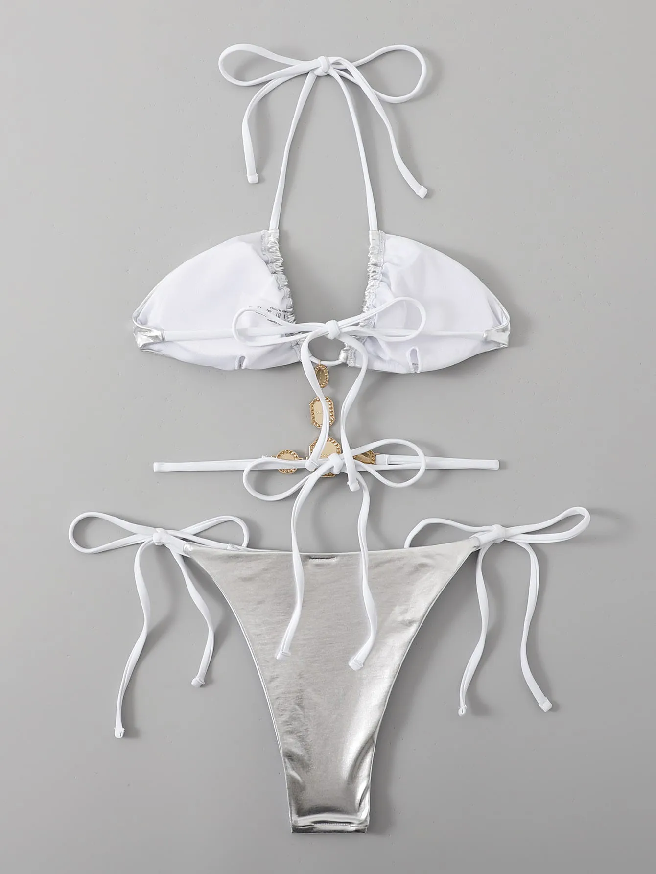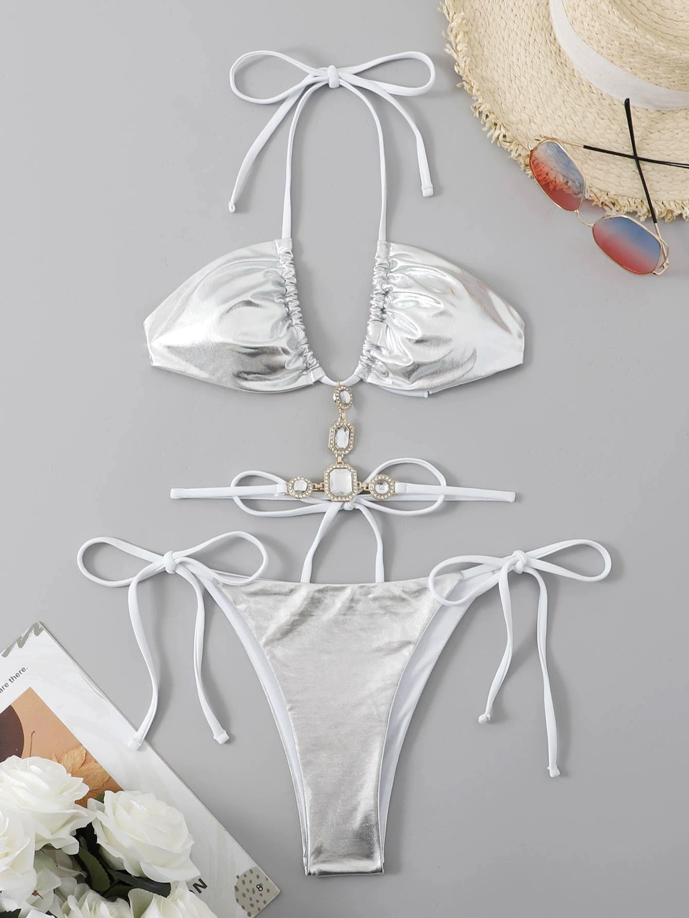 2026 New Crystal Pearl Diamond Bikini Set Luxury Silver Swimsuit Sexy Backless Women 2-Piece Pool Party Swimsuit