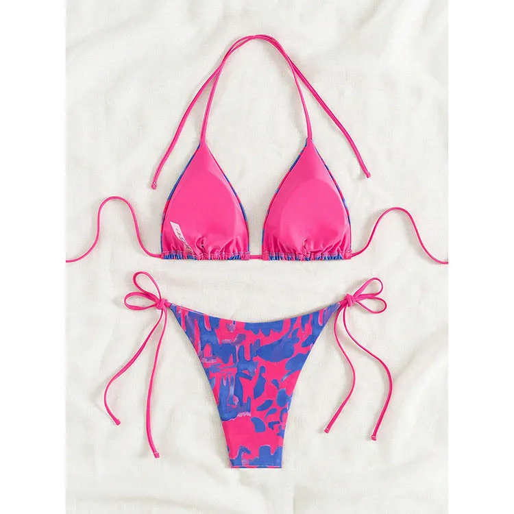Fashion Tie-Dye Print Multi-Color Sexy Women's Split High-Waisted Brazilian Triangle Micro Bikini Set 2 Piece Thongs Bottom Type