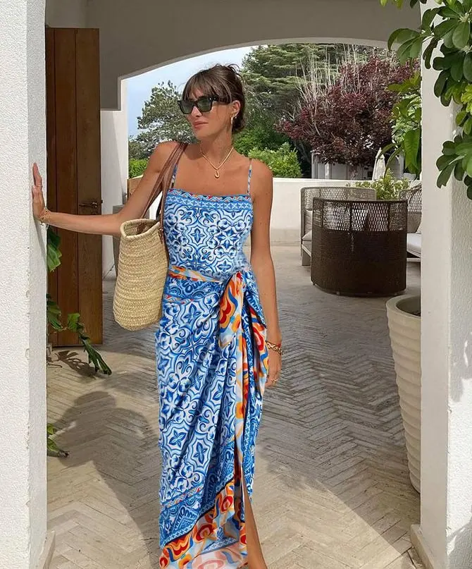 2026 Custom Printed Bohemian Beach Sexy Two-Piece Swimsuit Lace-Up Long Elegant High Street Skirt Suit