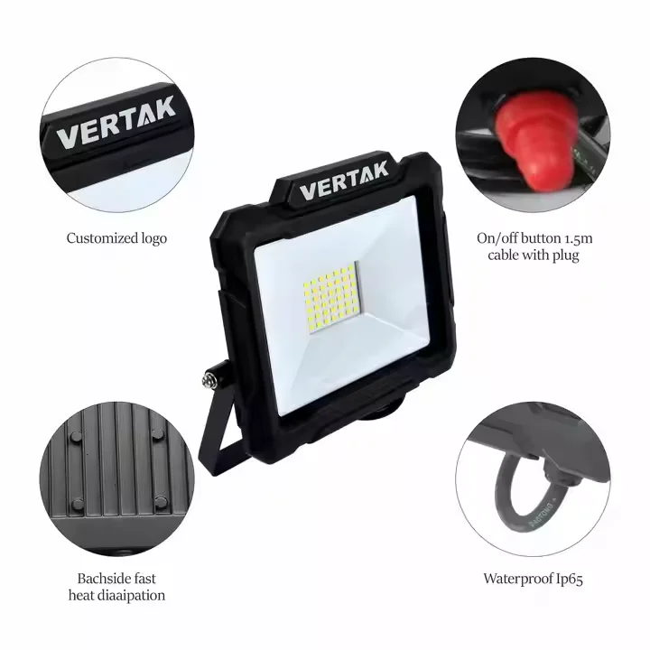 Vertak 20W/30W40W/50W High Efficiency IP65 SMD 2835 Working Light Outdoor Home Flood Lights LED Work Light with Plug