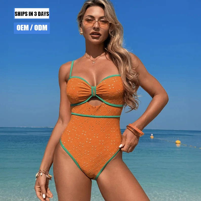New Sexy Three-dimensional Wrinkle Contrast Color V-neck with Backless One-piece Swimsuit Women's Custom Swimsuit Beachwear