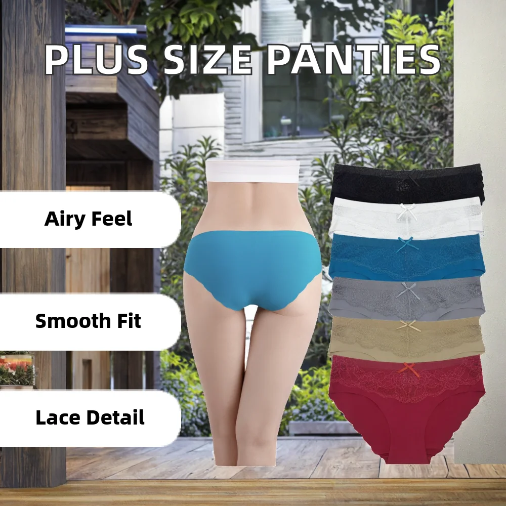 Women's Plus Size Sexy Breathable Ice Silk Seamless Hipster Panties Low-Rise Lace Solid Color Knitted Weaving Waist