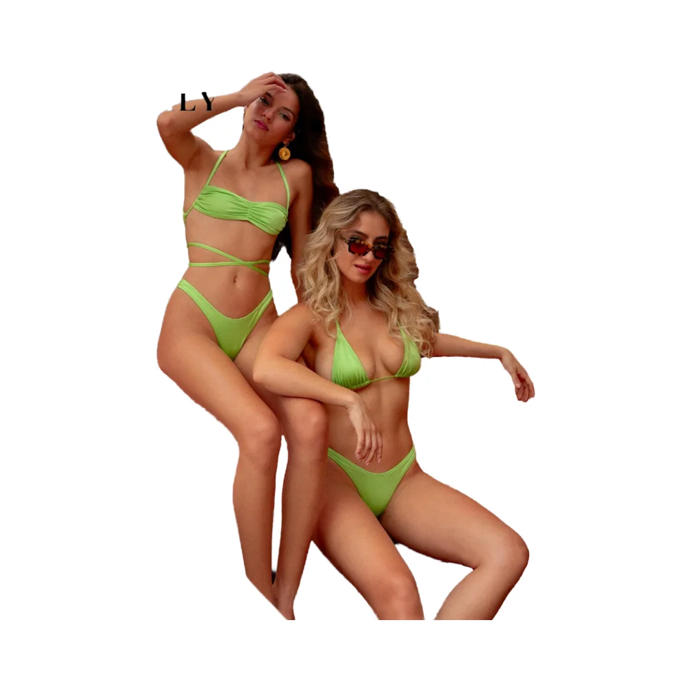 MLY Ruffle Bikini Summer Two Piece Suit Sexy Swimwear Bandage Biquini Triangle Swimsuit Printed Bathsuit