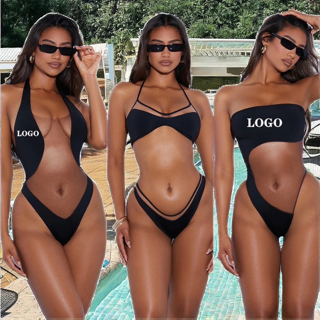 MLY Best Selling Solid Black and White Women Ladies Beachwear Custom Swimwear Sexy Micro Bikini Bathing Suits