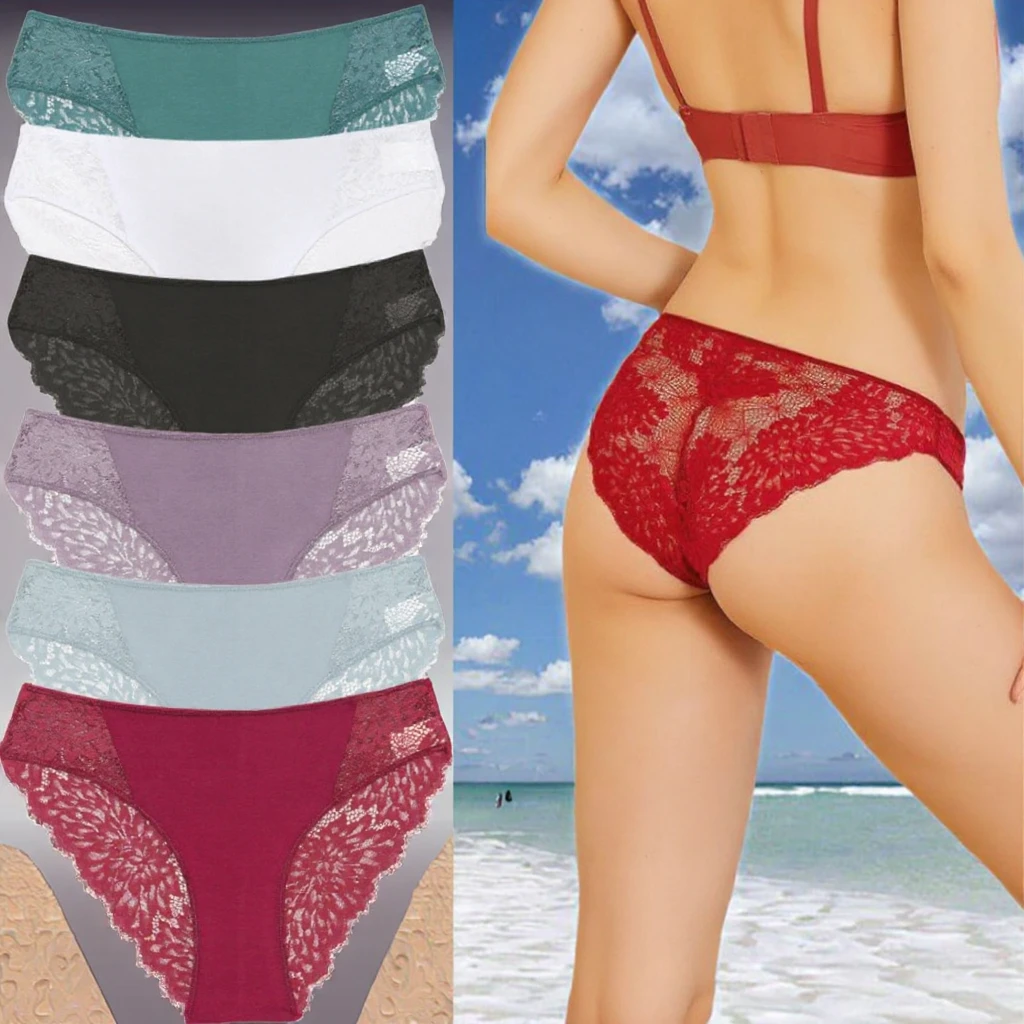Women's Comfortable Lace Low-Rise Bikini Underwear Transparent Sexy Solid Pattern Knitted Waist Lining Hole Quick Dry