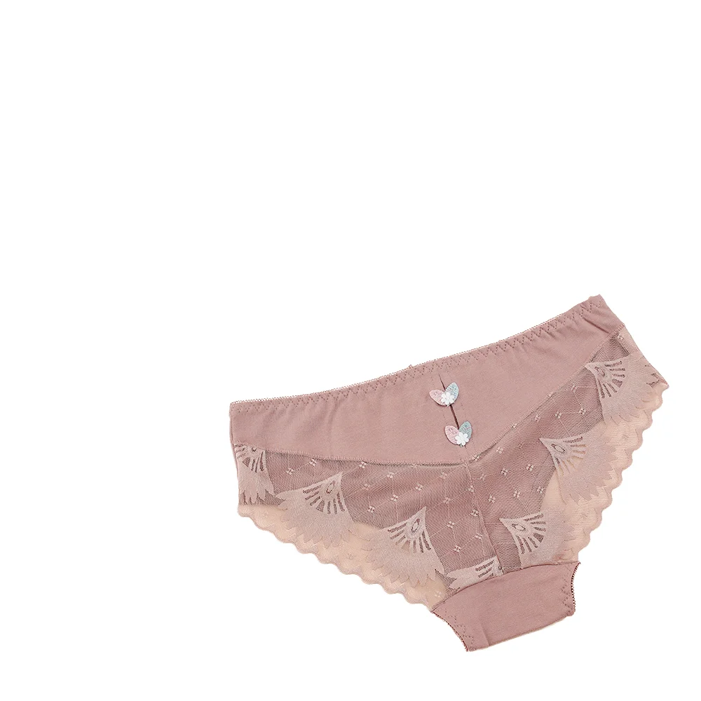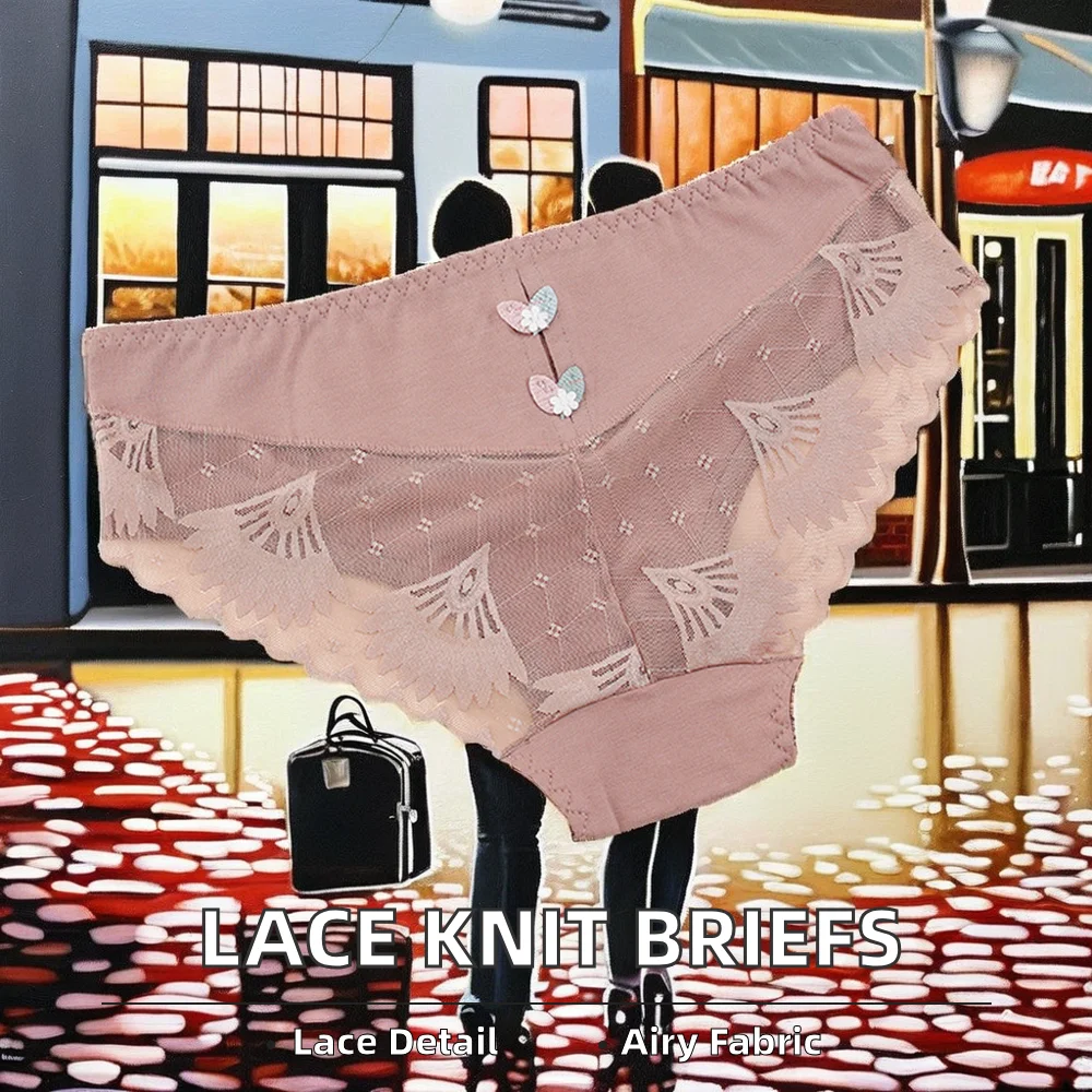 High Quality Women's Everyday Low-Rise Knitted Briefs Lace Decorated Plain Dyed Panties with Hollow Design Sex Underwear