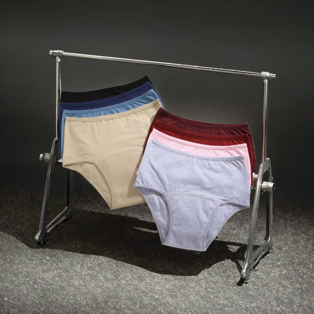 Finetoo 2026 S-XXL Plus Size Women Solid Cotton High Waist Menstrual Panties 5 Layers Leak-Proof Breathable Briefs