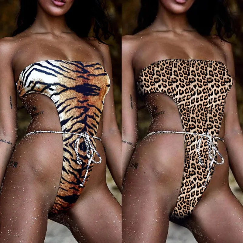 Hot Sell Tube Top Swimwear Sexy Leopard and Tiger Printed One Piece Bikini