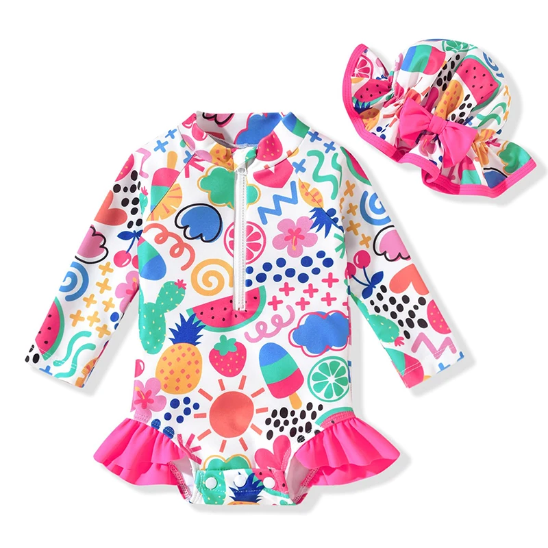 New Design Children'S Swimsuit Long-Sleeves Swimming Suit Kids Girl Custom Baby Swimwear
