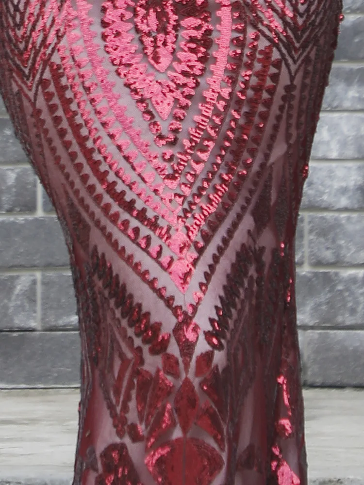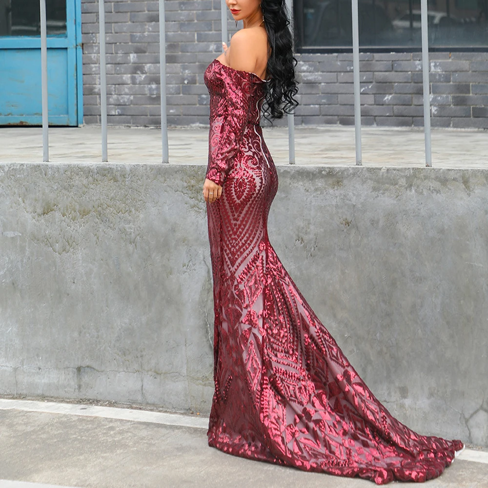 Women's Vintage Ball Gown Off-the-shoulder Sexy Elegant Sequin Banquet Red Carpet Floor-Length Dress