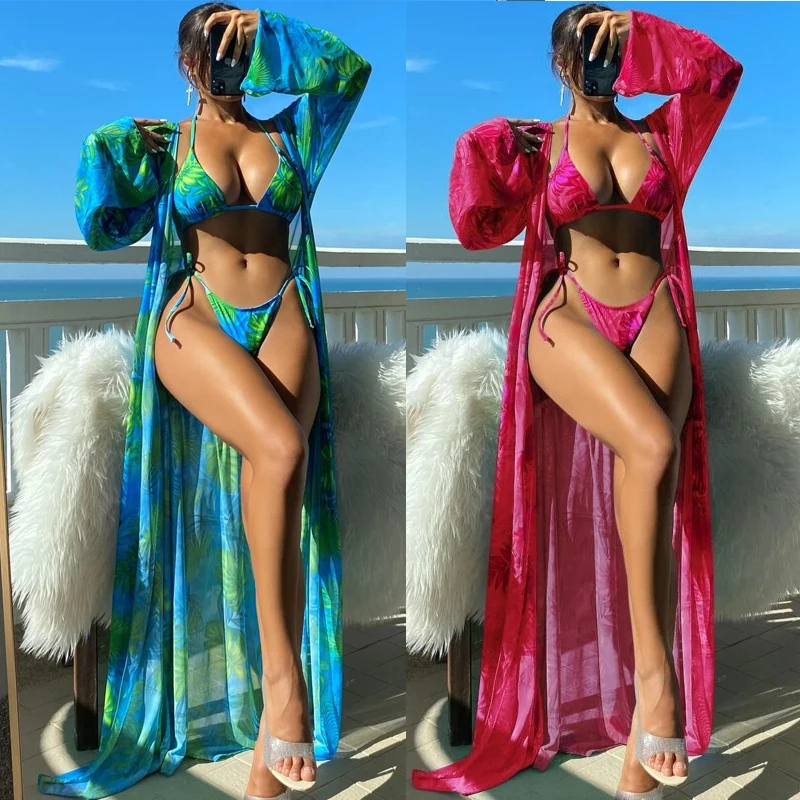 MLY Ruffle Bikini Summer Two Piece Suit Sexy Swimwear Bandage Biquini Triangle Swimsuit Printed Bathsuit