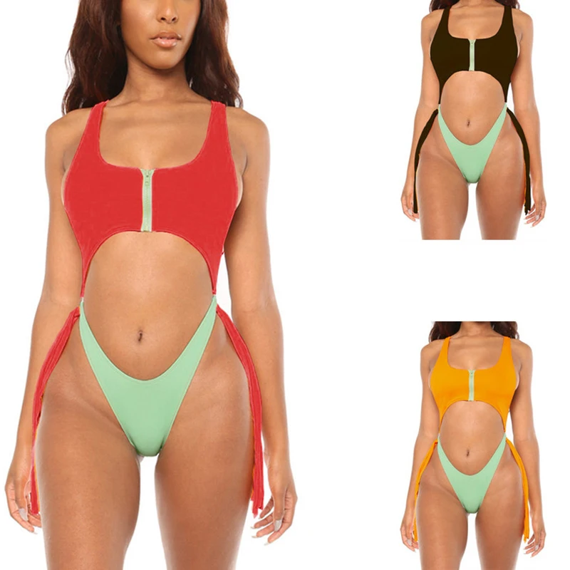 Customized Swimsuit One Piece Swimwear With Zipper Neon Bikini