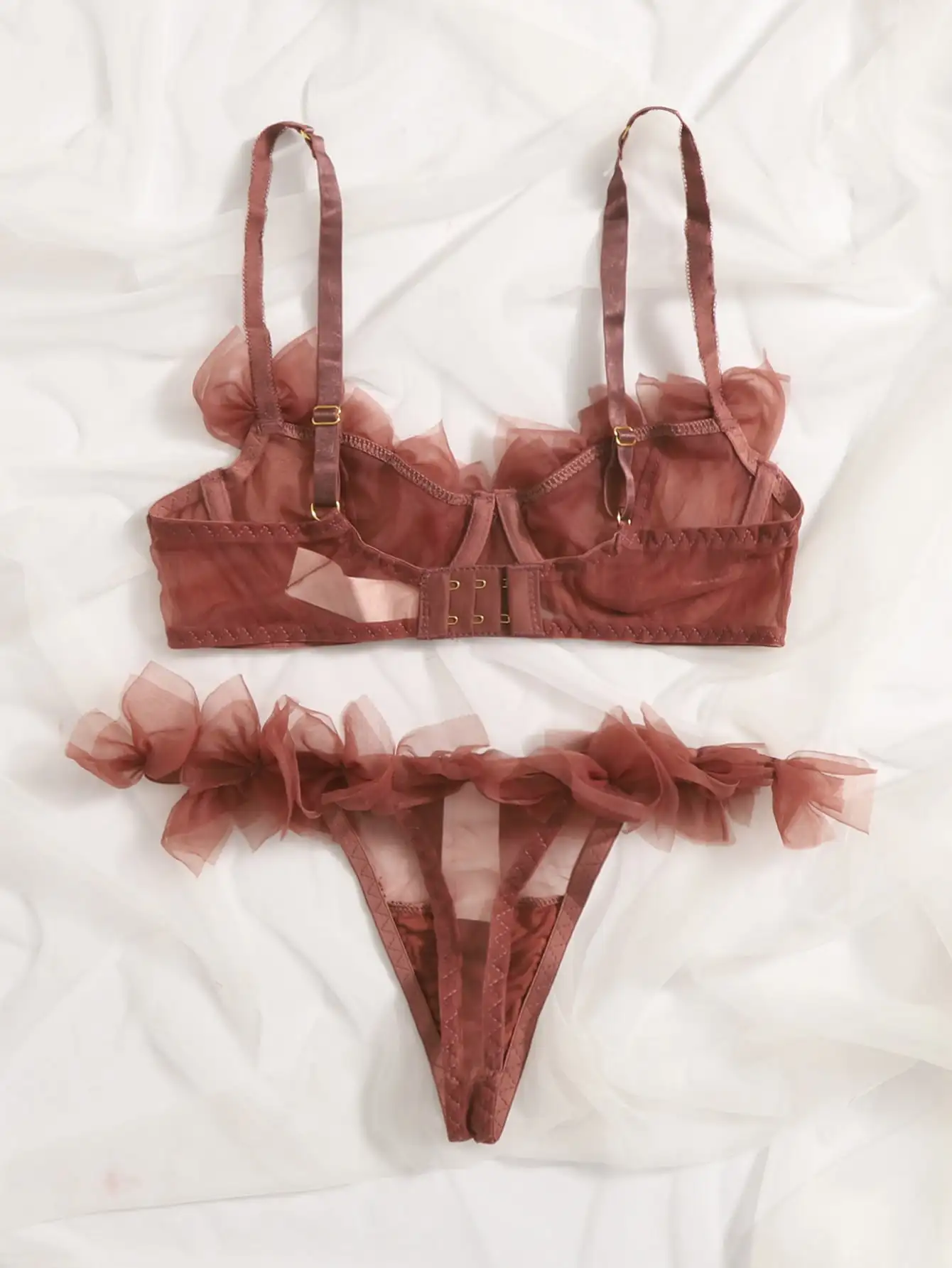 Hot Summer Sexy Girl Underwear Set Transparent Sheer Mesh Underwire Lingerie Set