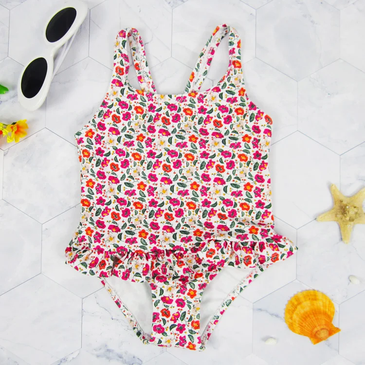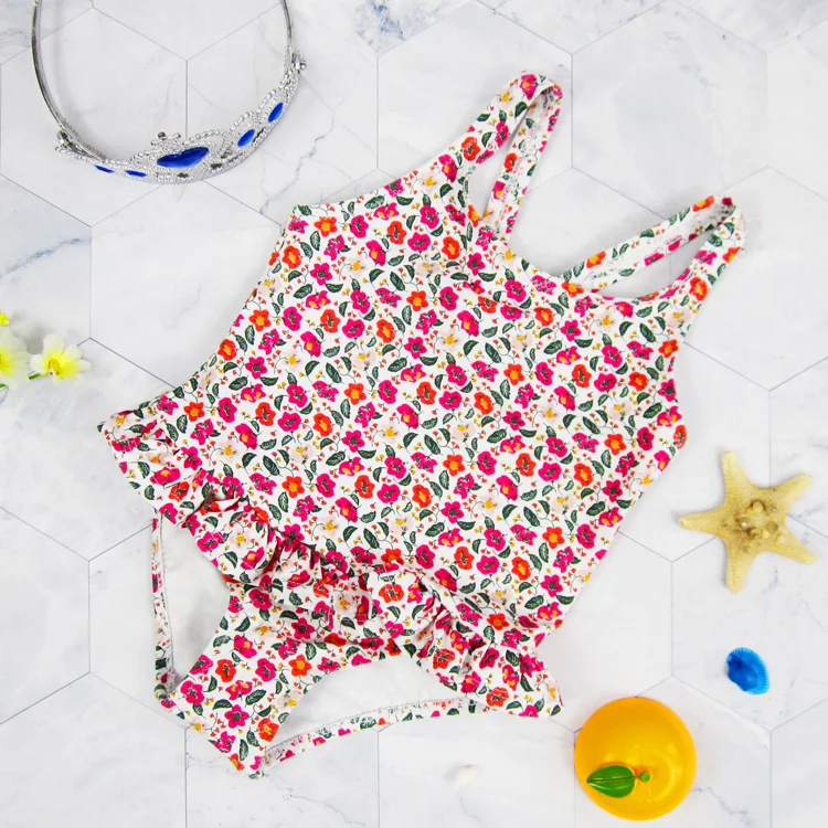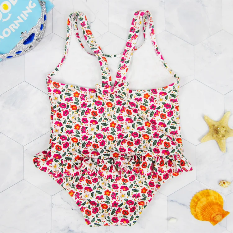 Girls' Floral Printed One-Piece Swimsuit with Skirt UPF 50 Protection Spandex/Nylon Material Breathable & Quick Dry