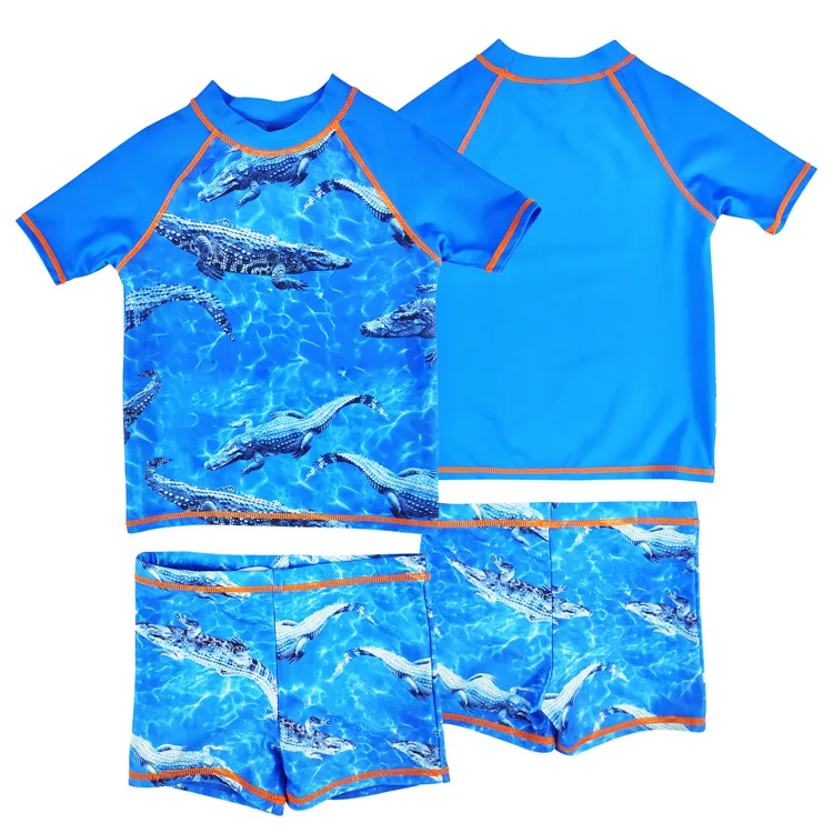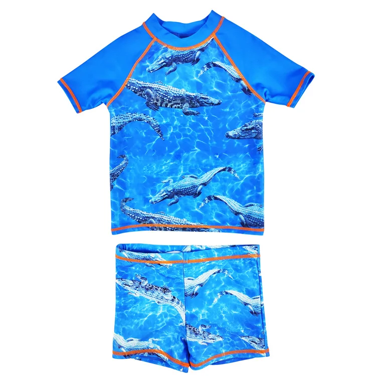 Customized Boys Two Piece Swim Trunk with Lace Front Design Animal Print Spandex/Nylon Quick Dry Summer Beach Swimwear for Kids