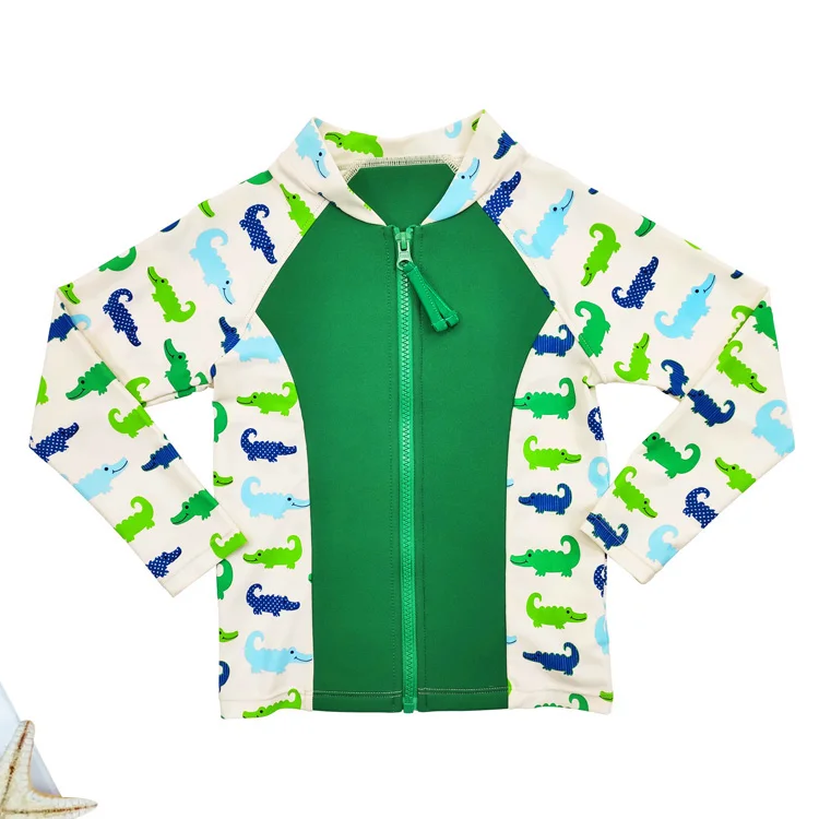 Customized Cartoon Animal Design Breathable UV Protection Quick Dry Long Sleeve Boys' Swim Trunk Beachwear