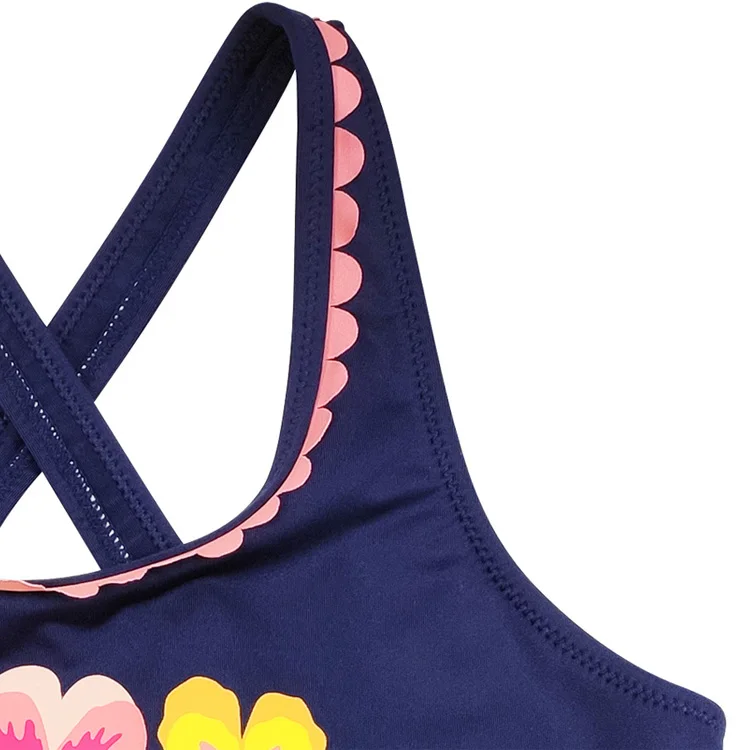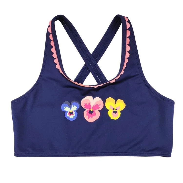 Wholesale 8-12Y Girls Tankinis 2-Piece Set Custom Floral Print Spandex/Nylon Quick Dry Breathable Swimwear for Kids