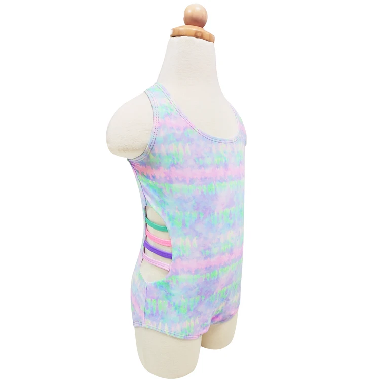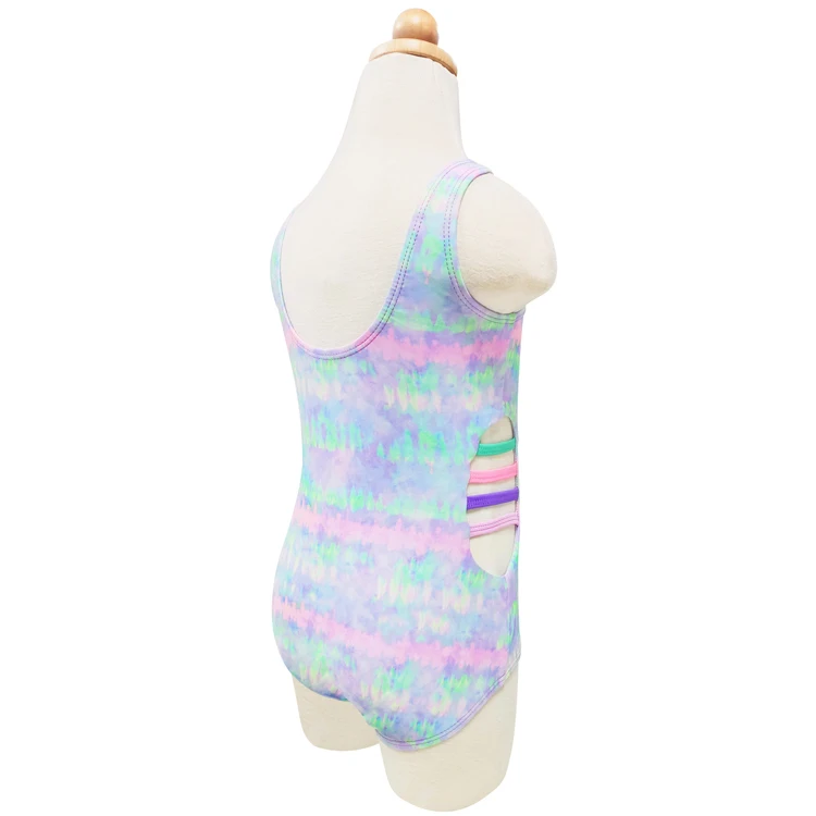 Wholesale Colorful One Piece Swimwear Beachwear for Kids Customized Tie-Dye Gradient Color Girls Swimsuit Bathing Suit for Beach