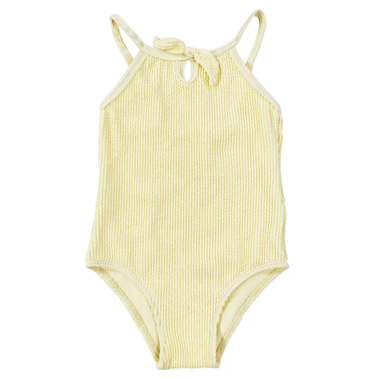 Wholesale Solid Summer Bathing Suits for Baby Girls Soft One Piece Summer Swim Wear Simple Breathable Kids Swimsuits