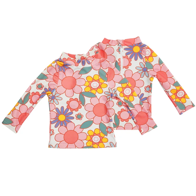 UPF 50+ Sun Protection Kids' Rash Guard Floral Print Long - Sleeve Swimwear Beachwear High Quality Custom Swimwear for Beach