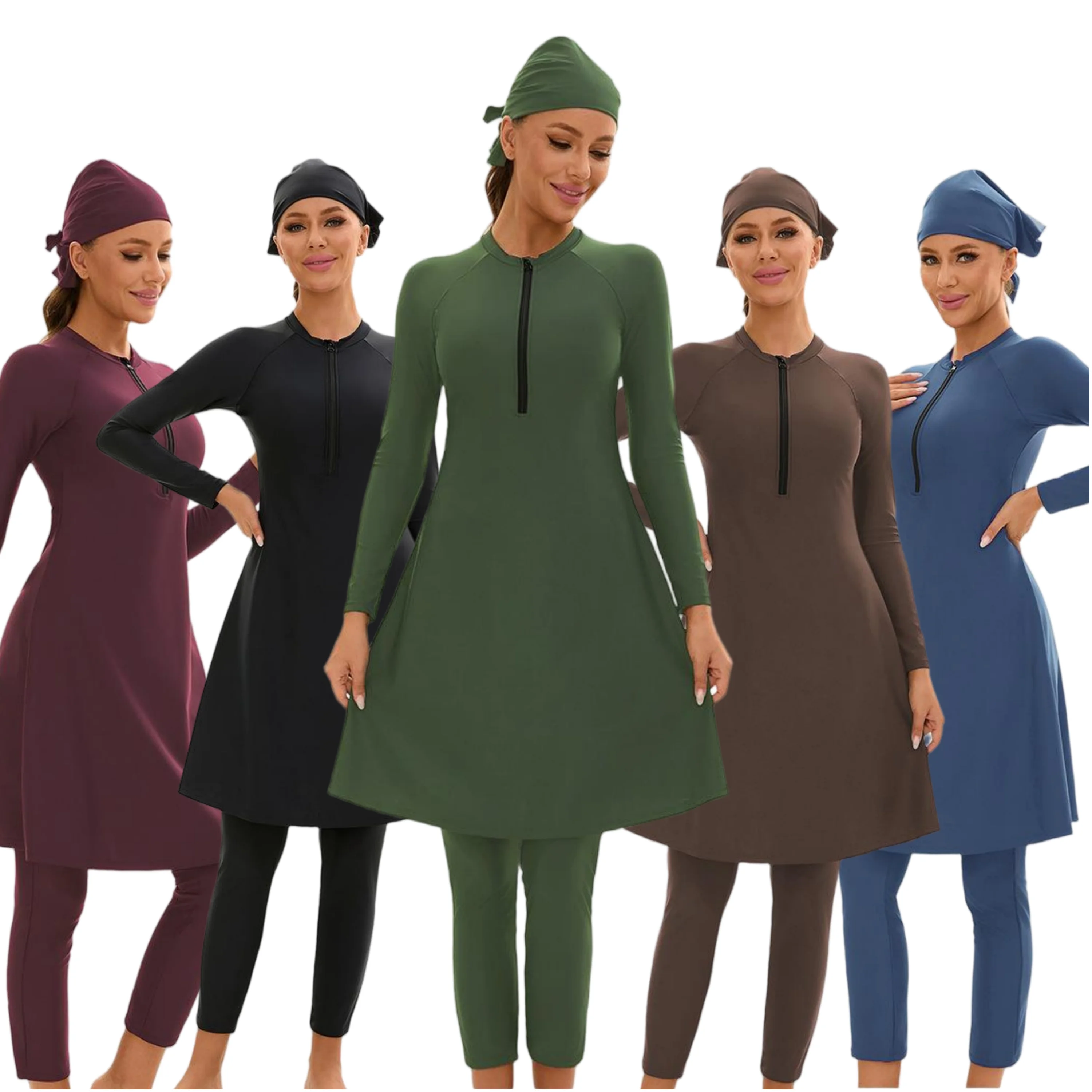 2026 Trend Women's Three Piece Split Sunscreen Swimsuit Muslim Long-Sleeved Full-Surrounded Islamic Women's Modest Sportswear