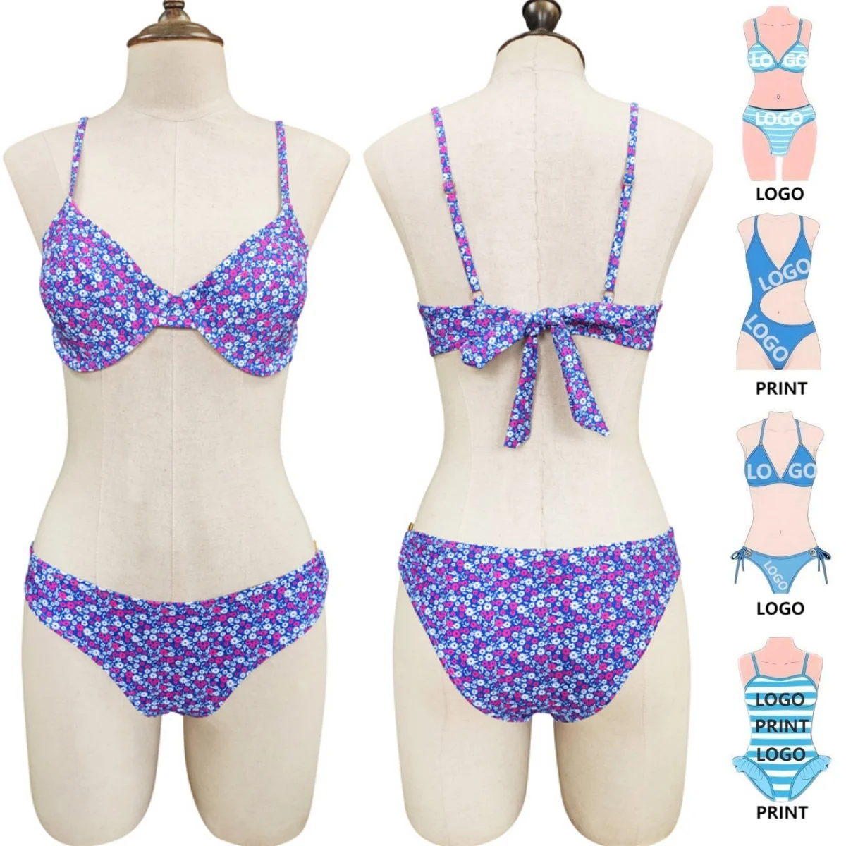 OEM Custom Woman's Floral Bikini Swimwear Women Low Rise Sexy Triangle Thong String Micro Bikini Set Luxury Bathing Suit Women