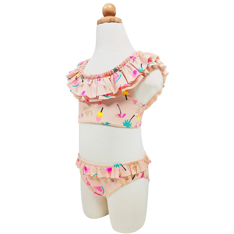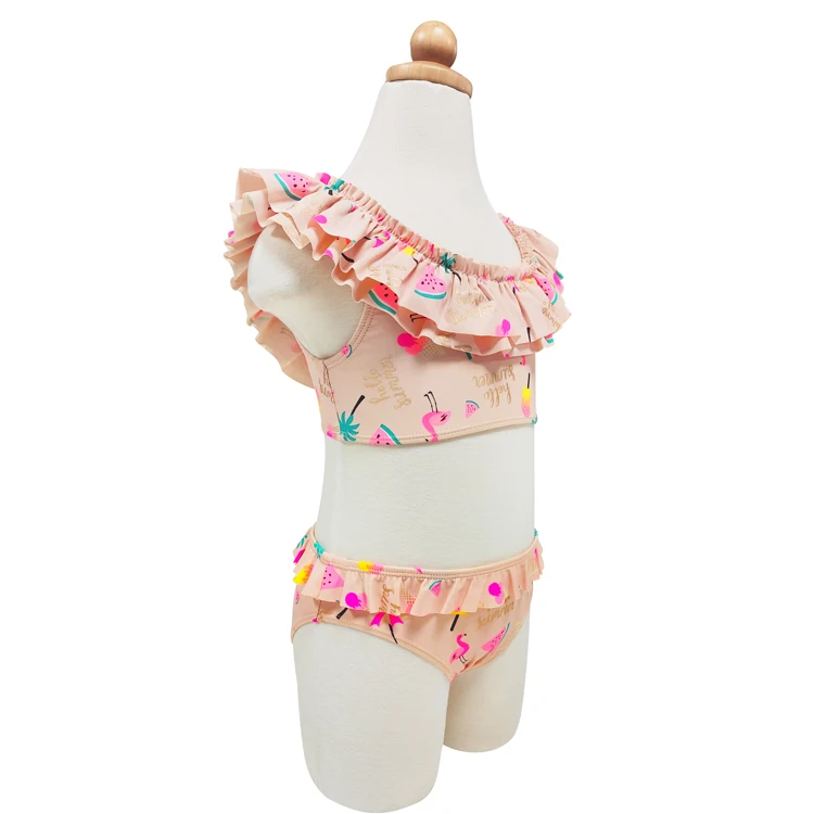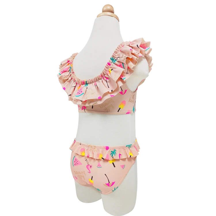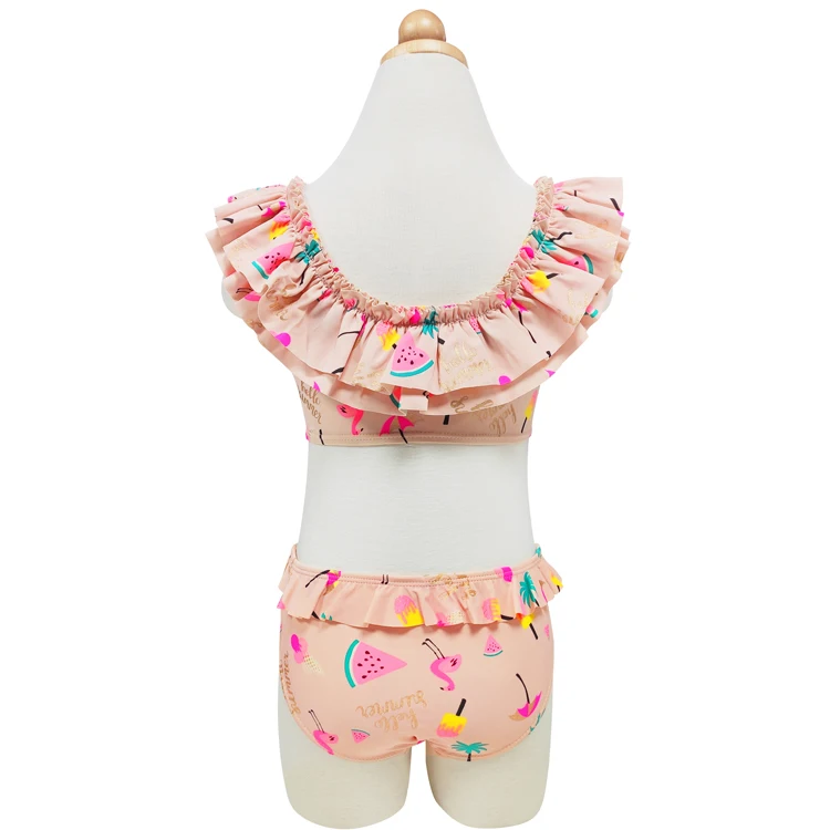 Girls' Frill Bikini Swimsuit - Tropical Fruit Flamingo Print-Two Pieces Beach Bathing Swimwear for Children