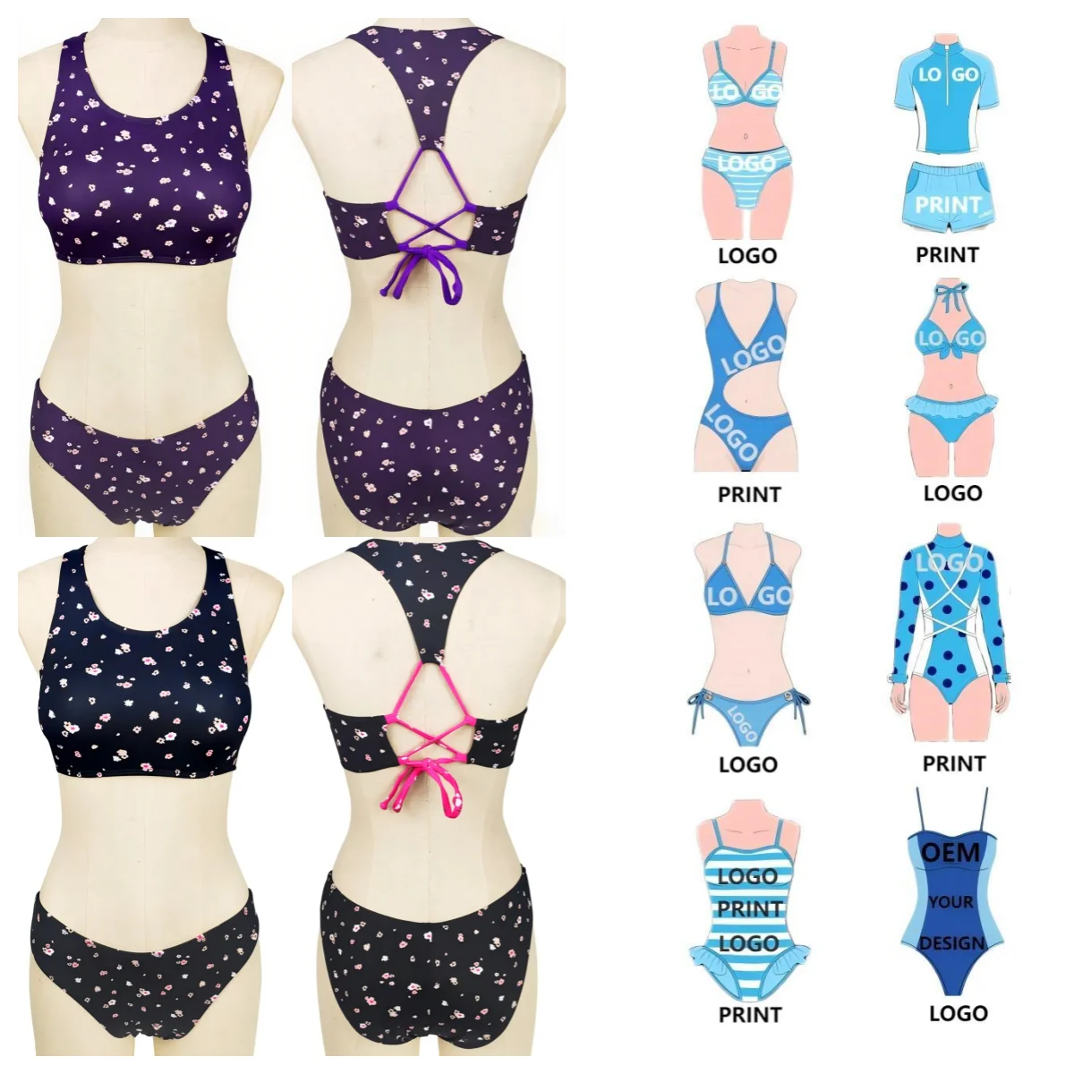 Customized Swimsuit Women's Bikini Set OEM Swimwear Beachwear Hot Sale Custom Print Swimming Suits Backless 2 Piece Bikini