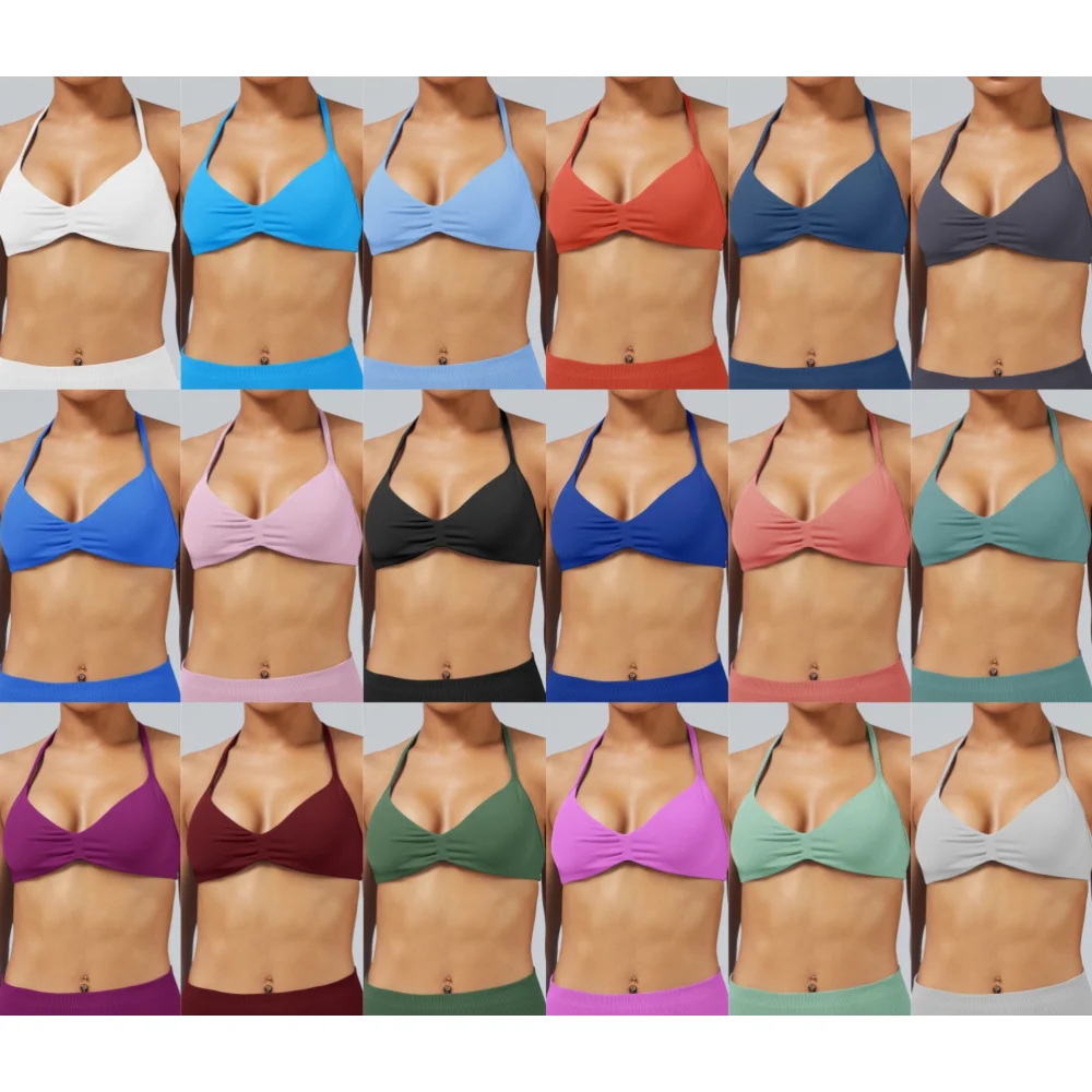High Quality Women's Seamless High-Impact Sports Bra Sets for Woman Custom Logo Gym Workout Halter Sports Backless Bra Padded